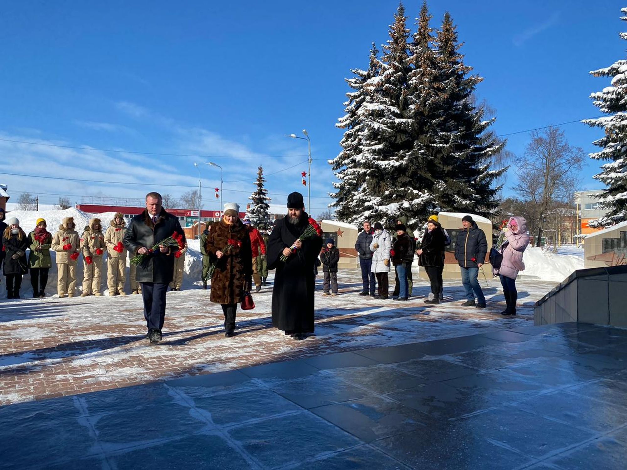 23 февраля благочинный Ликино-Дулёвского церковного округа священник Антоний Рыжаков возложил цветы к памятнику павшим воинам. На мероприятии присутствовали заместитель председателя совета депутатов Орехово-Зуевского городского округа М.А. Коркин, член общественной палаты округа С.В. Евтеева, сотрудники центра гражданско-патриотического воспитания молодёжи Орехово-Зуевского городского округа «Спектр», учащиеся, жители города Ликино-Дулево.