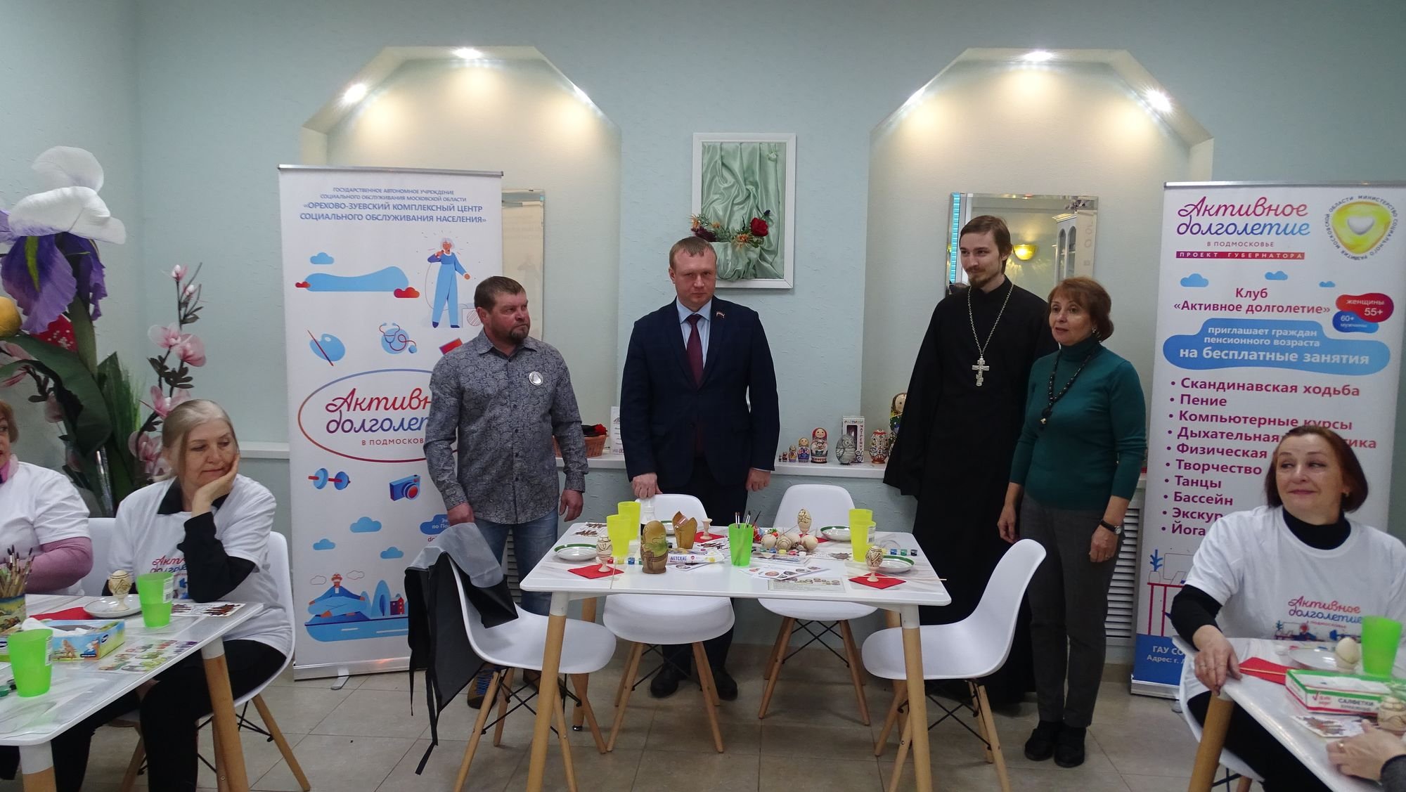 27 апреля на базе Ликино-Дулевского клуба «Активное долголетие» центра социального обслуживания населения Орехово-Зуевского городского округа состоялся областной мастер-класс по росписи деревянного пасхальных яиц. Руководил мастер–классом профессиональный художник, руководитель студии декоративно-прикладного искусства «Триумф» С. Коблов. Гостями мероприятия стали заместитель председателя Совета депутатов Орехово–Зуевского г.о. М.А. Коркин и начальник управления социальной защиты населения В.К. Гущин. С приветственным словом к собравшимся обратился настоятель Казанского храма деревни Запутное священник Андрей Ходкевич.