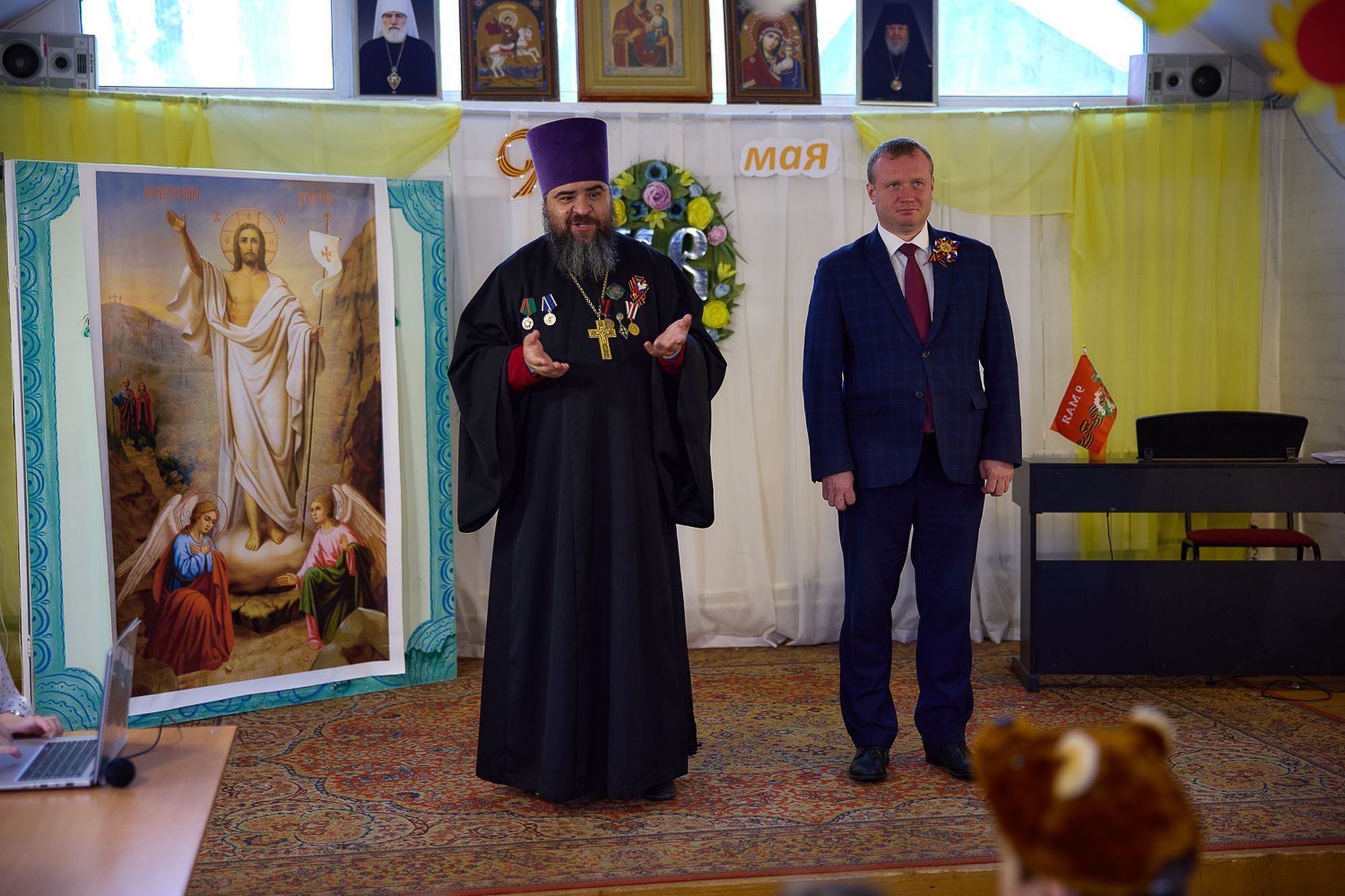 9 мая на митинге у памятника павшим воинам на городском кладбище г. Орехово-Зуево выступили глава Орехово-Зуевского городского округа Г.О. Панин, благочинные Орехово-Зуевского и Ликино-Дулевского церковных округов протоиерей Андрей Коробков и священник Антоний Рыжаков. На митинге в г. Ликино-Дулево жителей города и ветеранов приветствовали начальник Ликино-Дулевского территориального отдела И.А. Щедрин и благочинный Ликино-Дулевского церковного округа священник Антоний Рыжаков. На митингах в деревнях Губино и Савино выступил настоятель Ахтырского храма деревни Яковлево священник Михаил Лытьков.