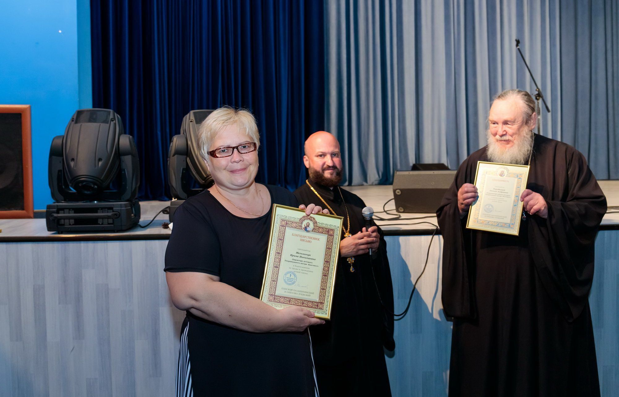 Грамотой Балашихинской епархии в благословение за помощь в организации и проведении летней смены были награждены духовник лагеря иерей Виталий Севостьянов, директор лагеря И. Н. Мельничук и координатор работы лагеря П. А. Коробкова.