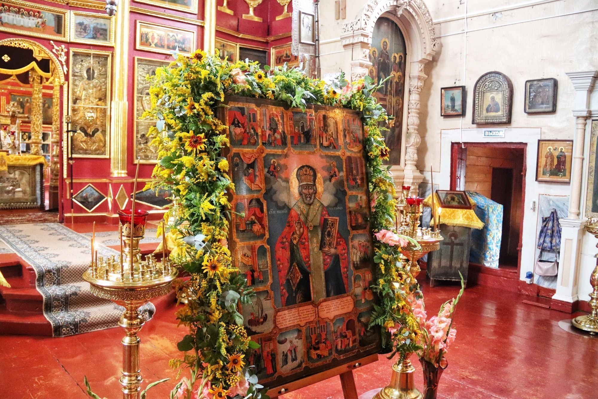 Накануне перед всенощным бдением в храм была доставлена древняя икона святителя Николая в житии, которую пожертвовала прихожанка для новосозидаемого Никольского храма. Эта икона была спасена от поругания в 70-е годы ХХ века и хранилась как великая святыня у нее дома.