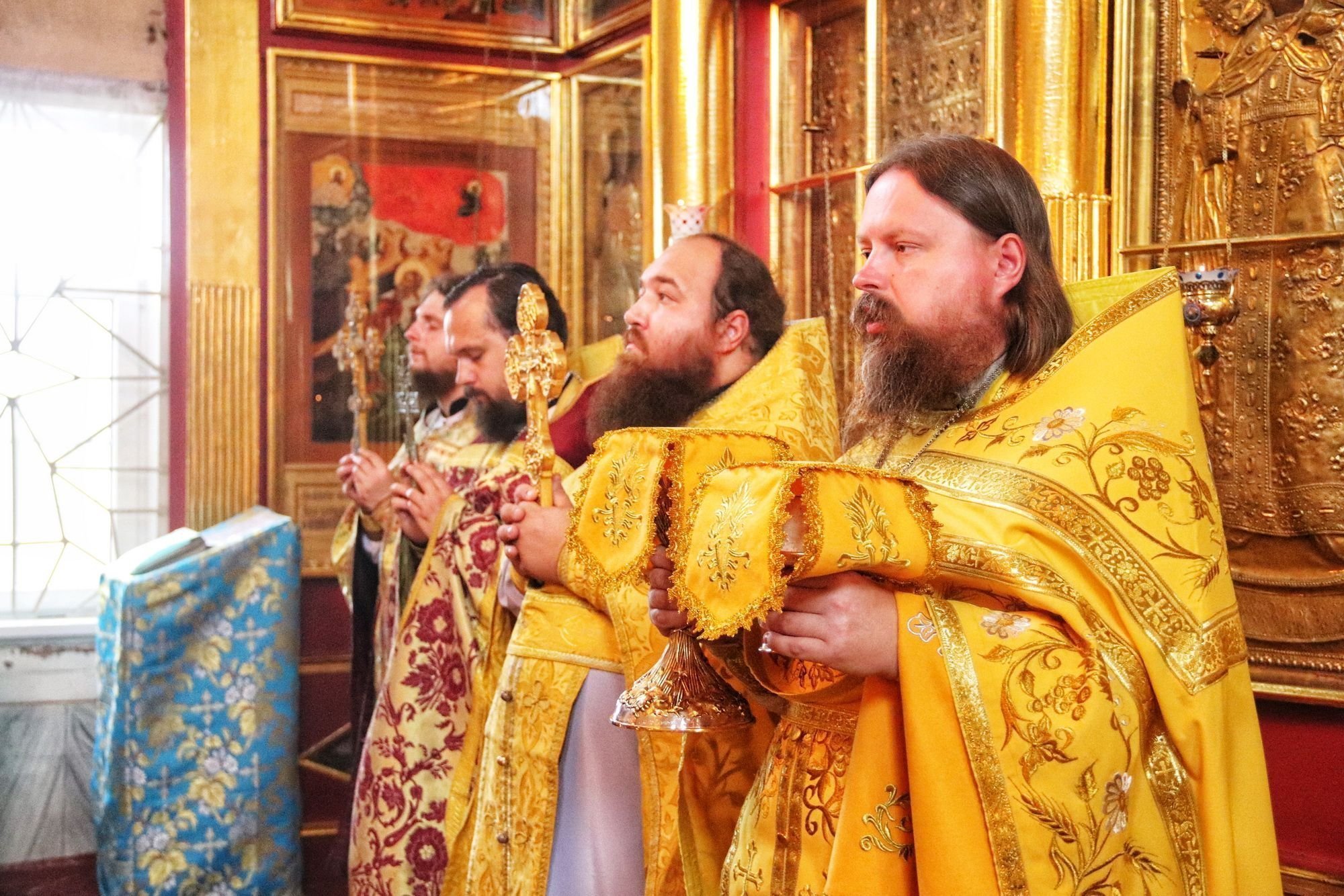 Божественную литургию совершил игумен обители Серафим (Голованов) в сослужении настоятеля единоверческой общины Преображения Господня г. Куровское священника Алексия Гугливатого, настоятеля Богородицерождественского храма села Радушино Зарайского городского округа священника Андрея Спиридонова и братии обители.
