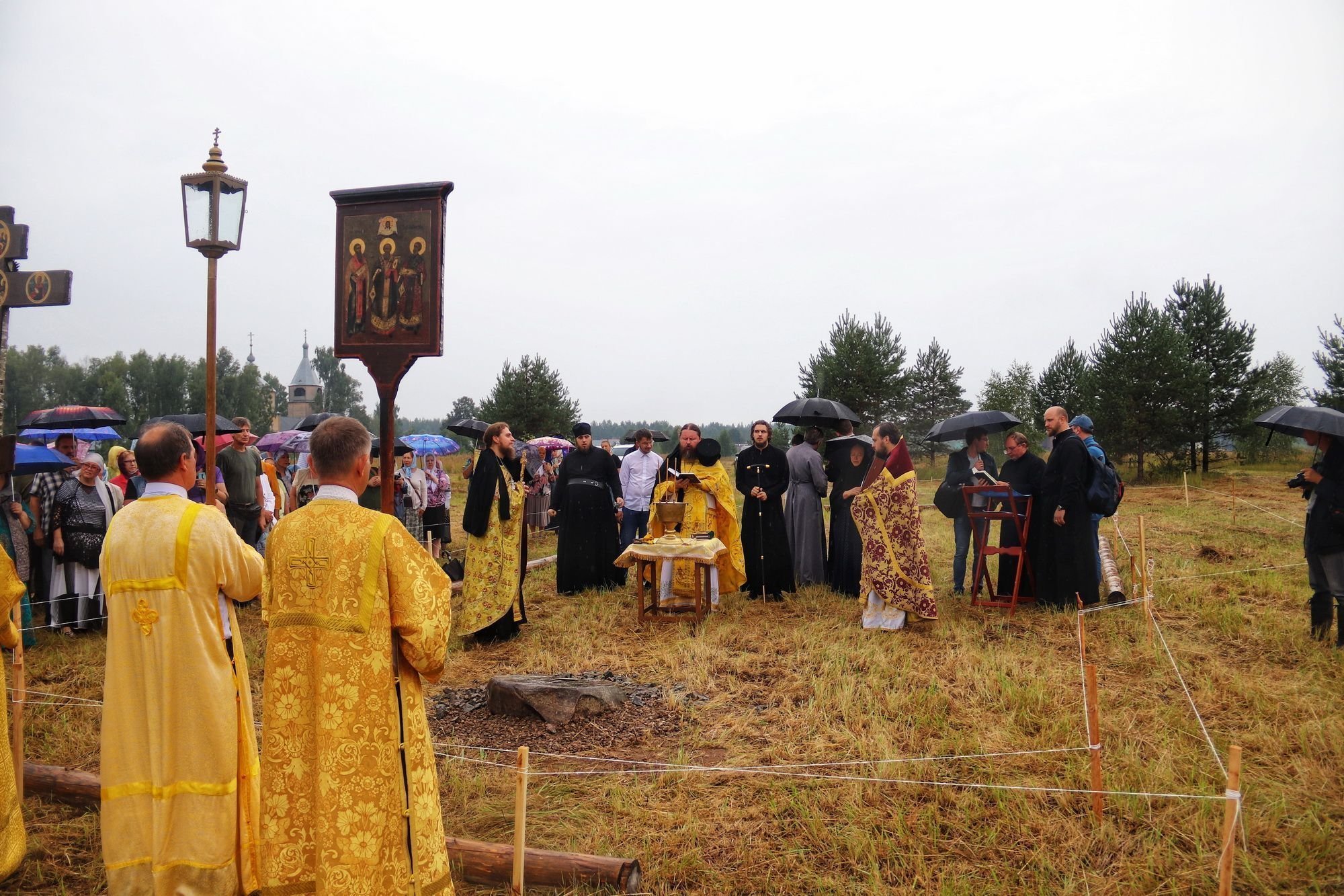 По окончании Литургии духовенство и молящиеся совершили крестный ход до места, где по благословению епископа Балашихинского и Орехово-Зуевского Николая игумен Серафим совершил освящение креста и закладку камня в основание Никольского храма.