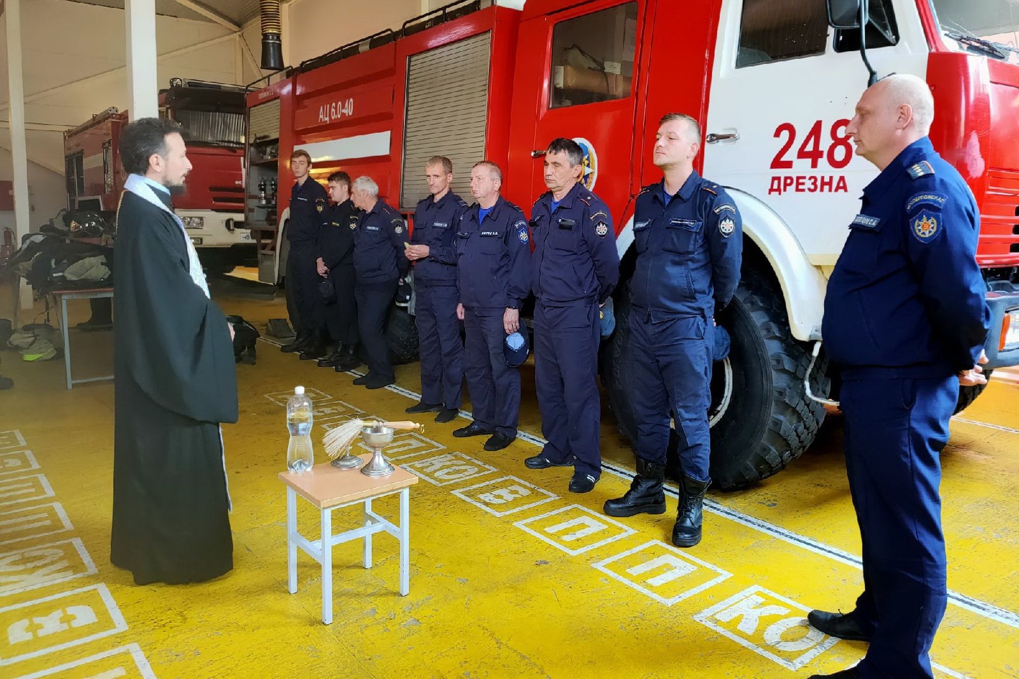За богослужением присутствовали служащие пожарной части.