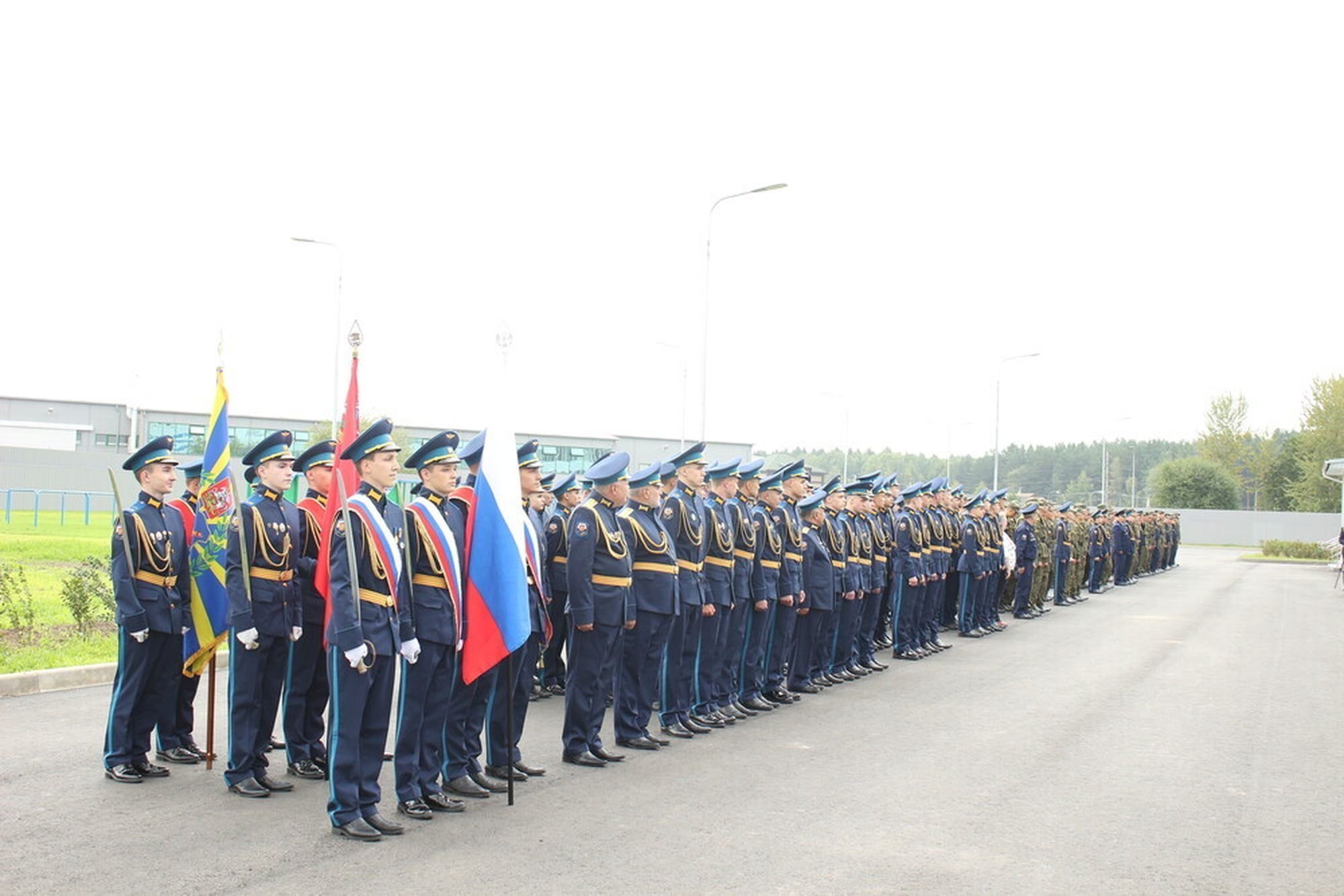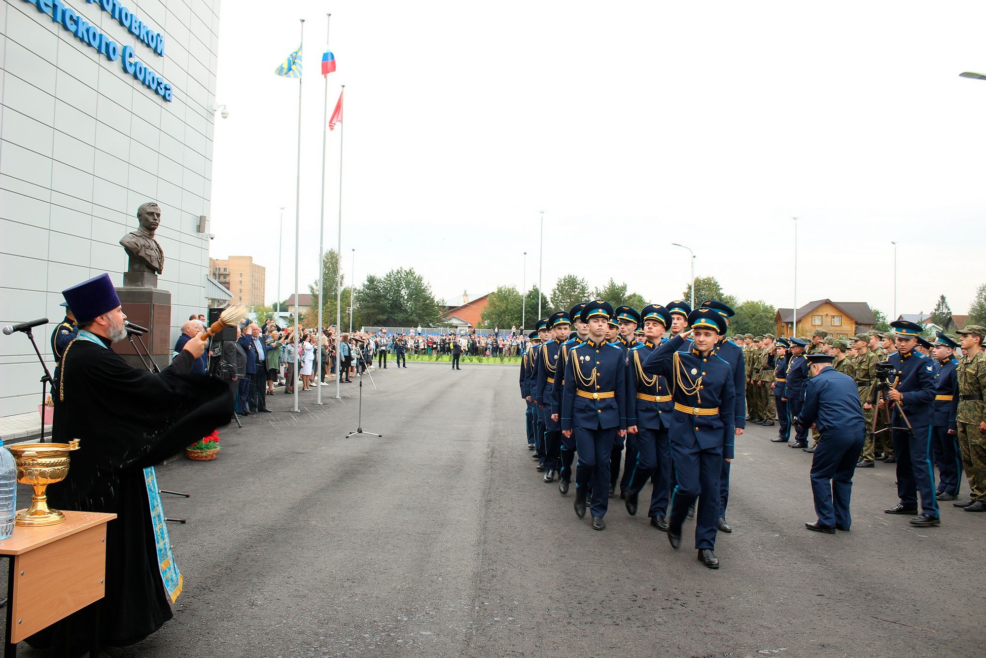 Во время общего построения состоялся вынос флагов Российской Федерации, Московской области и Военно-воздушных сил Российской Федерации, прозвучали гимны Российской Федерации и школы.