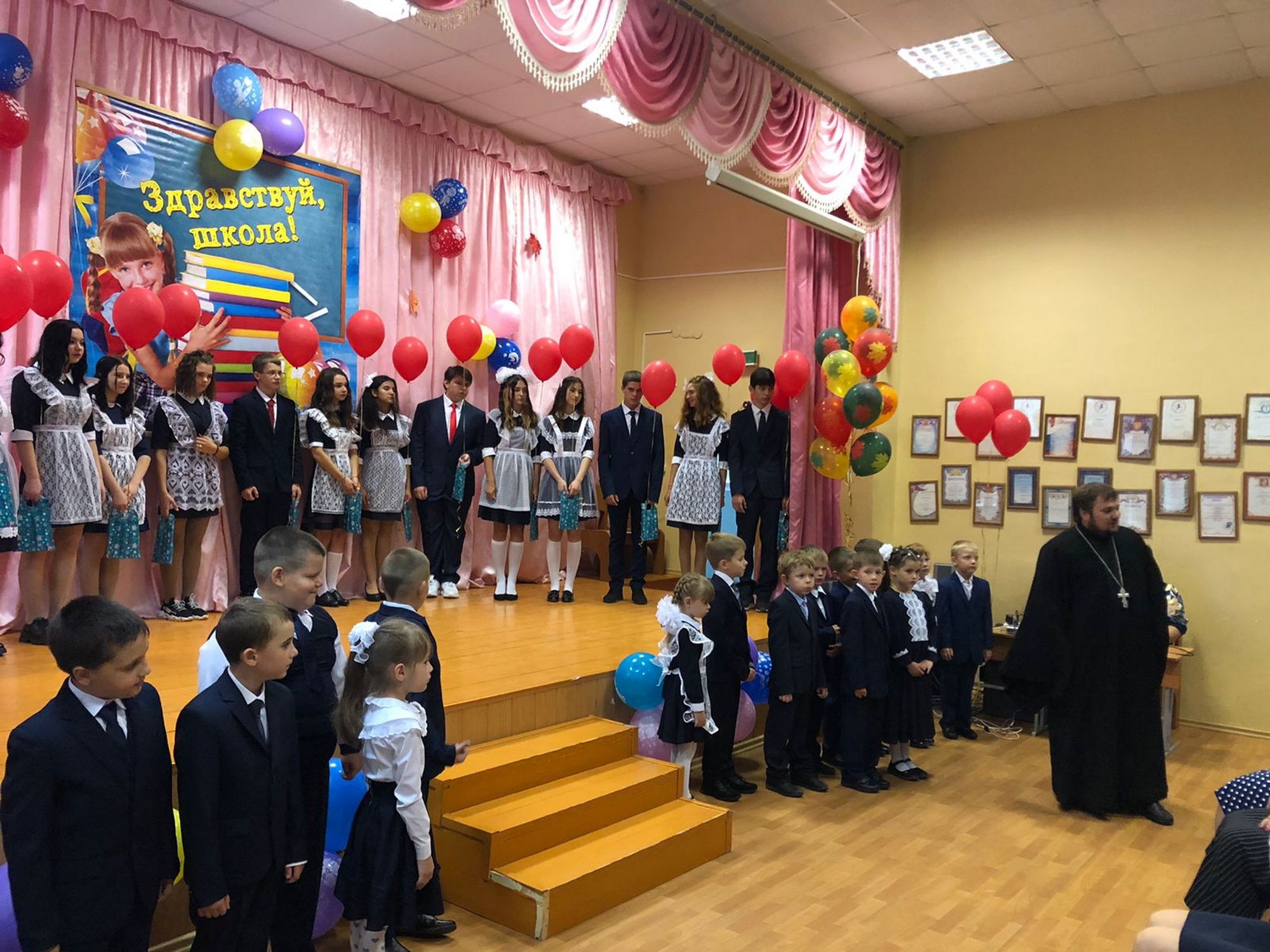 Настоятель Троицкого храма села Шарапово иерей Евгений Шевыкин выступил на первом звонке в Коробовском лицее.