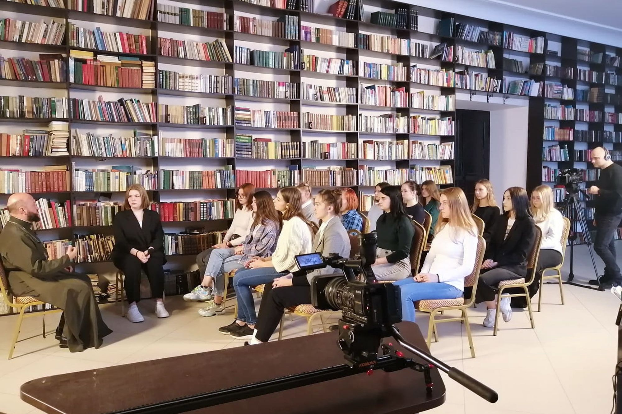 Передача прошла в формате диалога учащихся Орехово-Зуевского профессионально-педагогического колледжа с благочинным церквей Орехово-Зуевского округа протоиереем Андреем Коробковым на духовные темы.