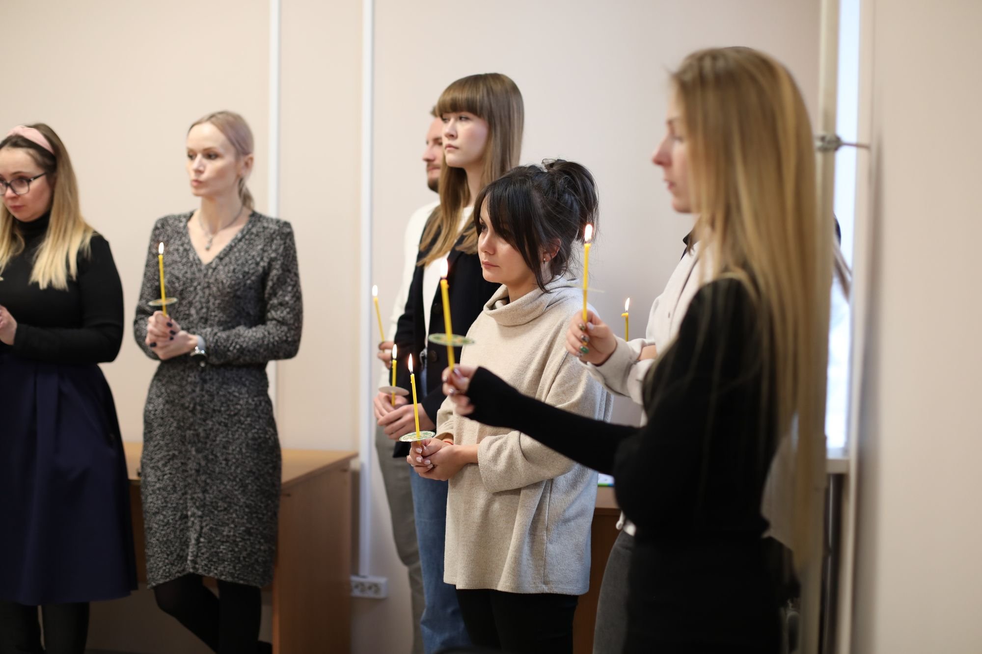 За богослужением молились сотрудники отдела во главе с руководителем Д. В. Князевым.