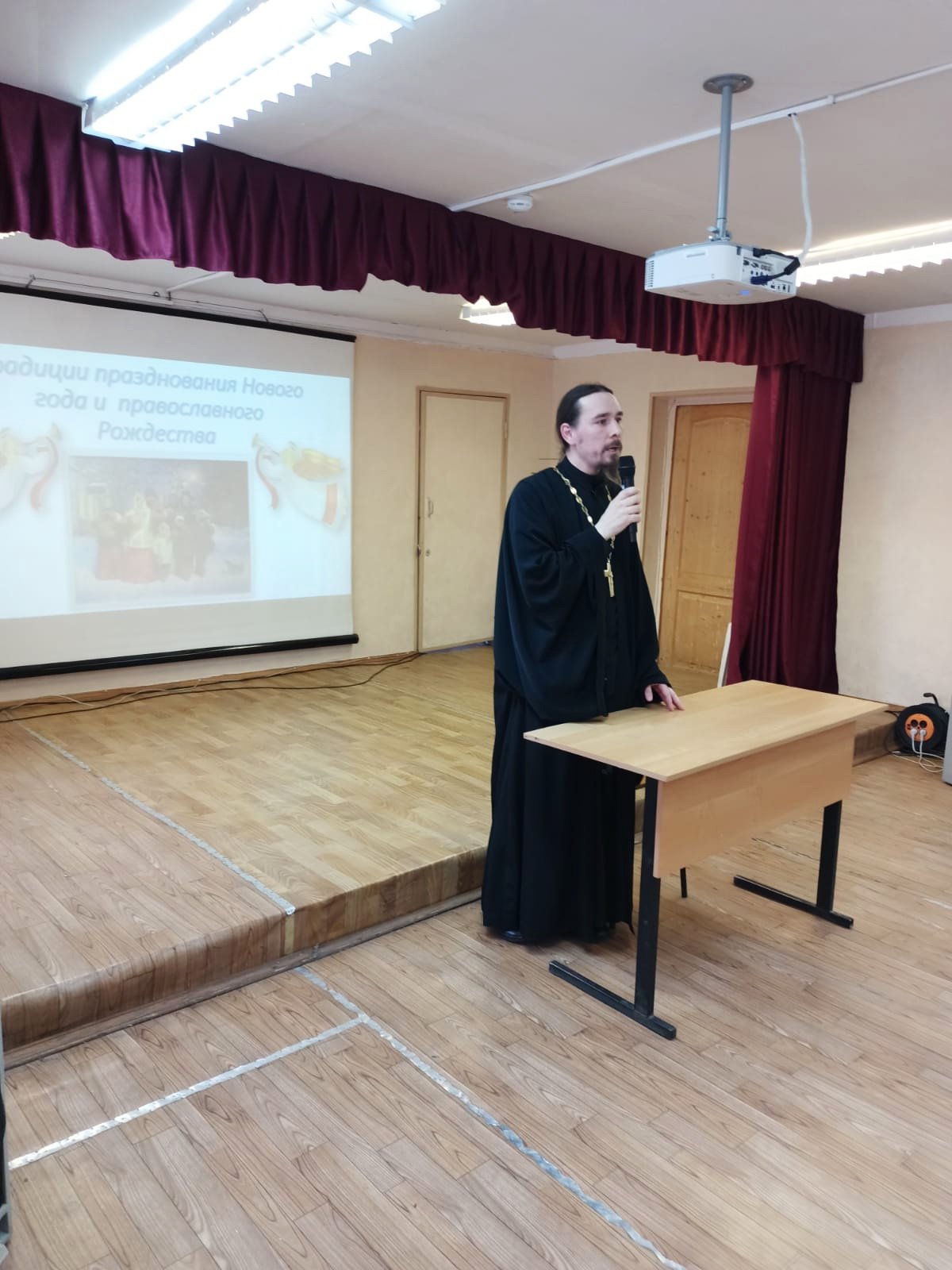 Отец Тимофей рассказал о евангельских событиях Рождества Христова, о Рождественском посте, святочных днях и об истории празднования Нового года, пожелав ребятам уделять особое внимание добрым делам и вниманию к ближним в эти святые дни.