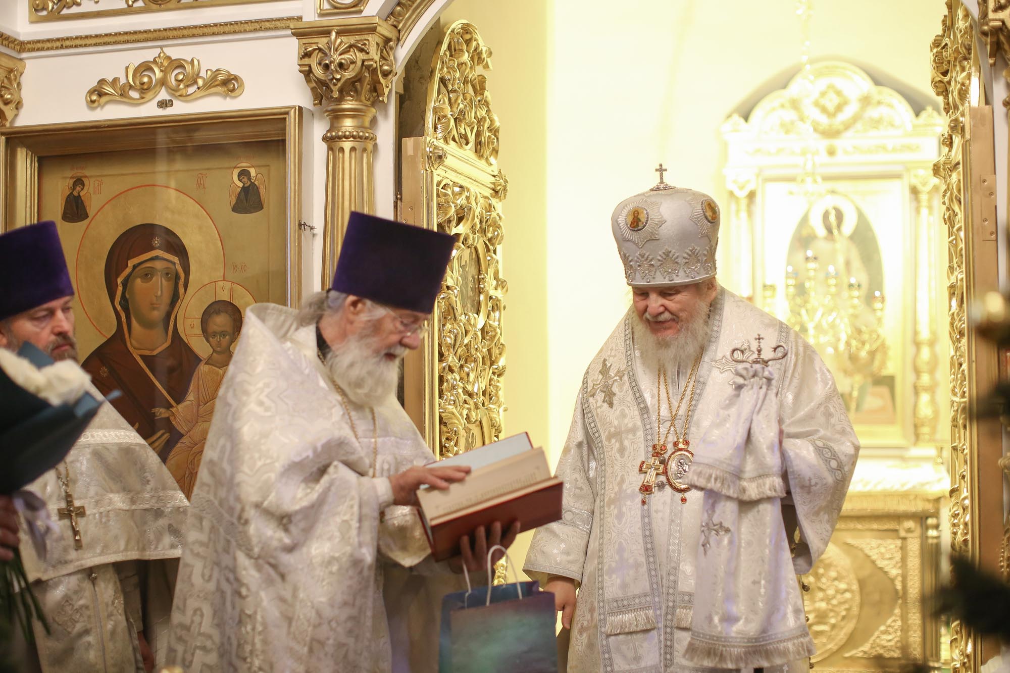 По окончании Литургии настоятель храма протоиерей Сергий Дворецкий поблагодарил епископа Николая за визит и преподнес ему памятную книгу об Иоанне Крестителе.