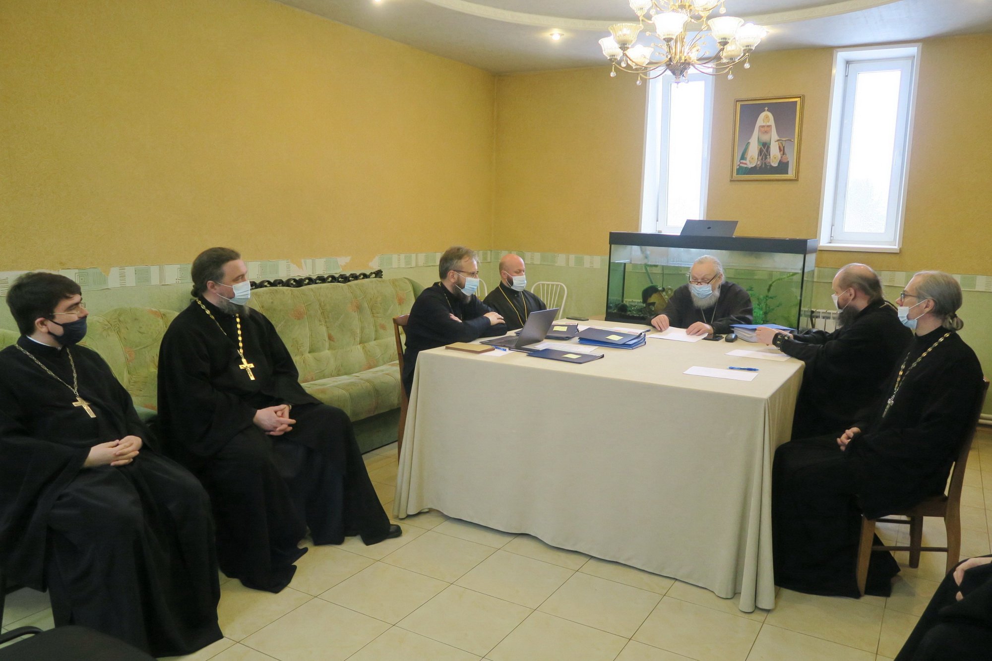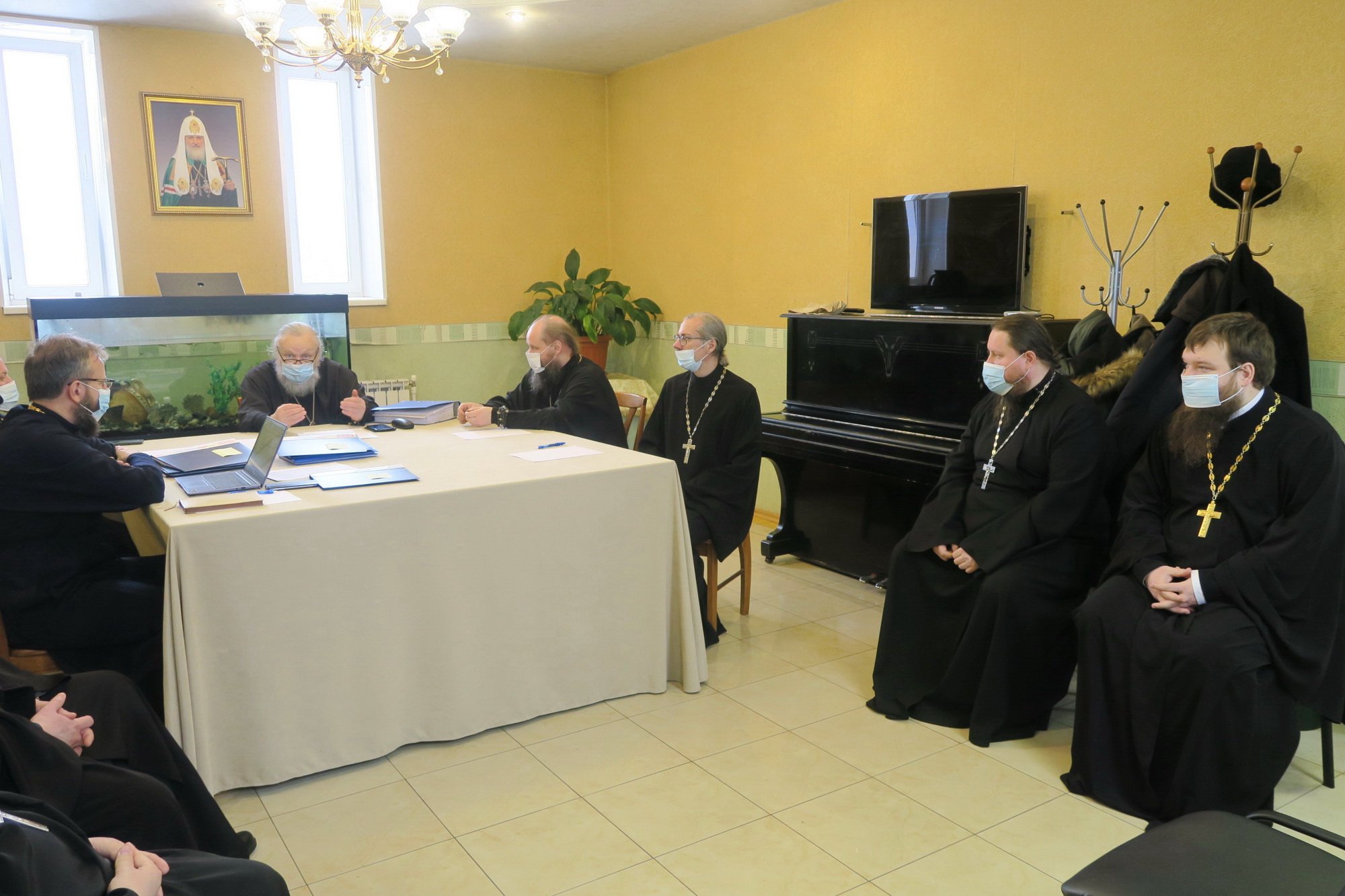 В начале заседания Владыка Николай довёл до сведения присутствующего духовенства содержание циркуляра, полученного из канцелярии Святейшего Патриарха Московского и всея Руси о необходимости усилить контроль за соблюдением профилактических мер в связи с распространением штамма омикрон коронавируса.