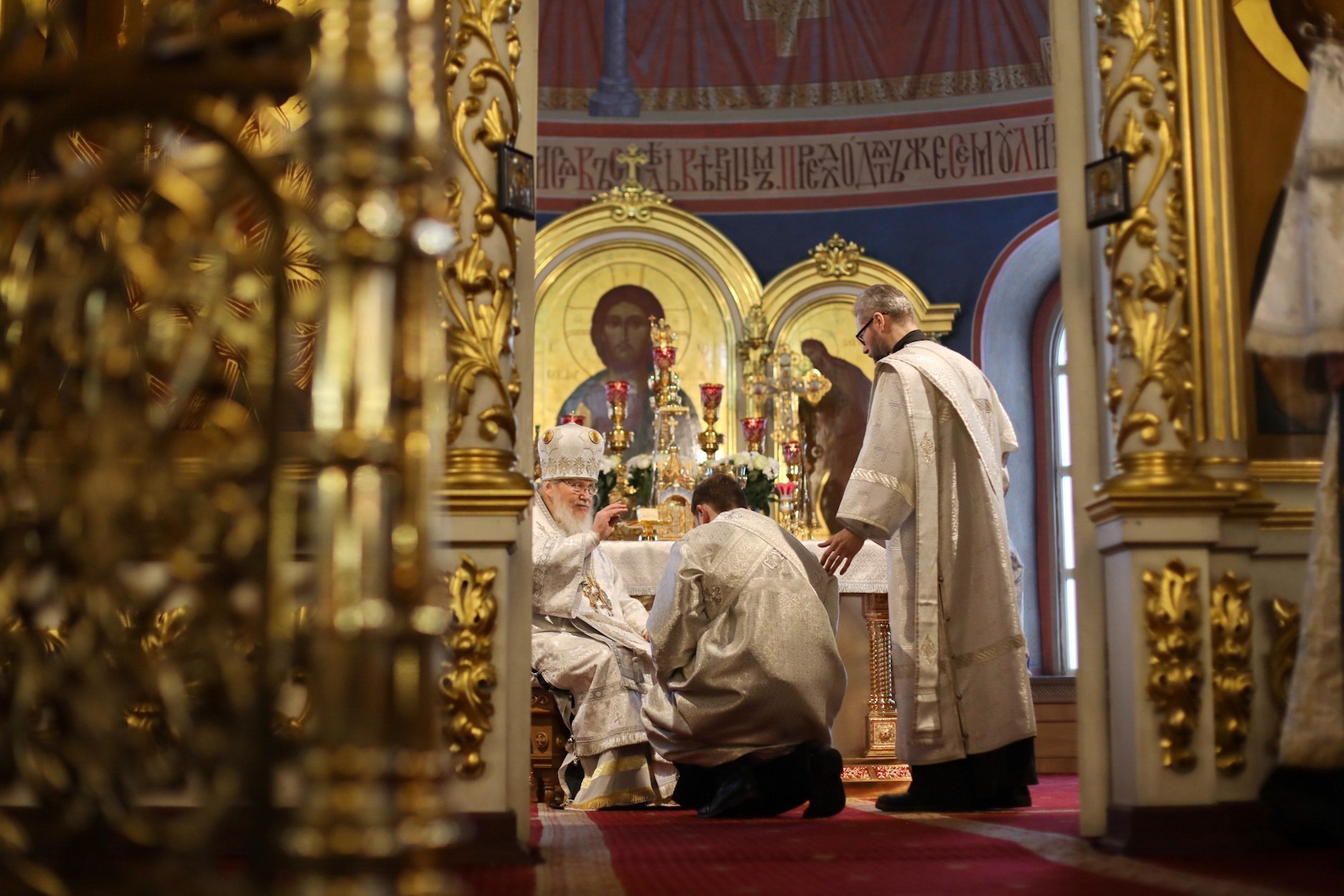 За Богослужением была совершена диаконская хиротония клирика Богоявленского собора чтеца Николая Герасимова.