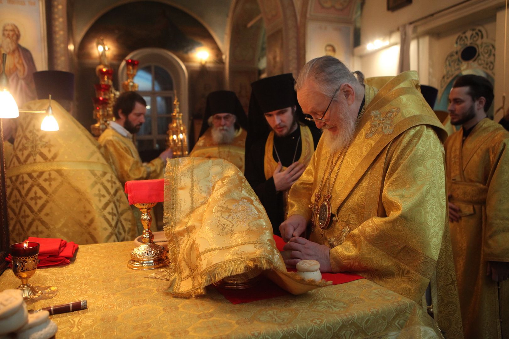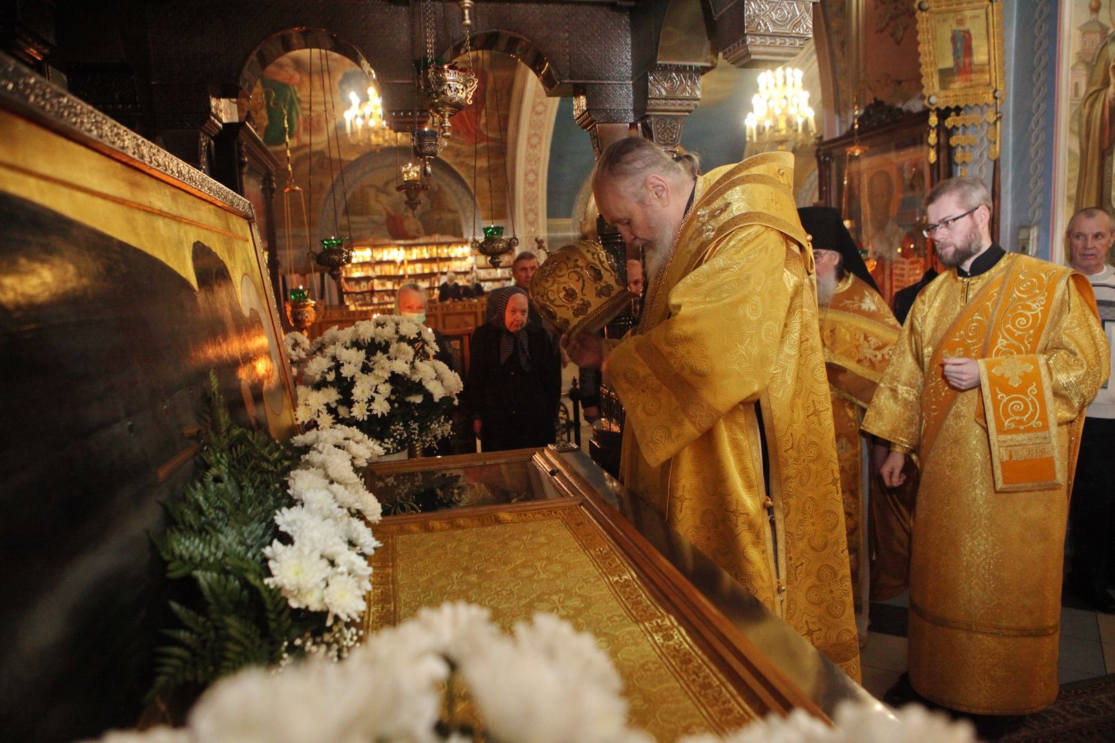 Перед началом Литургии Владыка Николай поклонился раке с мощами святого праведного Василия Павлово-Посадского.
