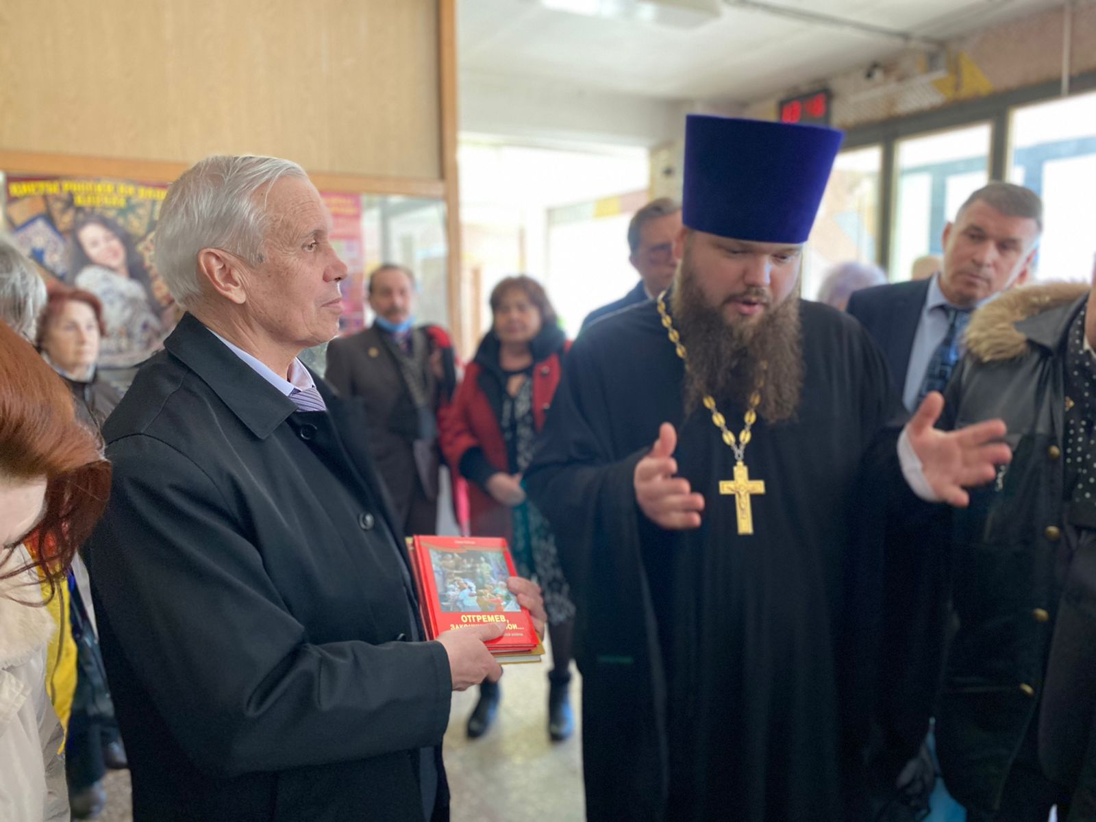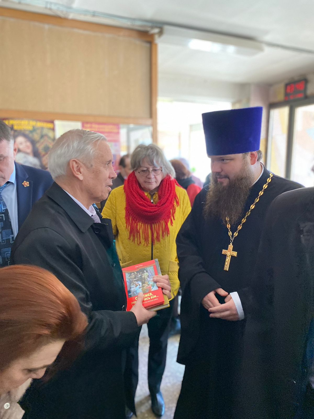Отец благочинный обратился к присутствующим со словами приветствия и благопожелания, передал председателю Московской областной организации ветеранов В.П. Пикулю в благословение образ Спасителя, а представителям ветеранских организаций городских округов Московской области по благословению епископа Балашихинского и Орехово-Зуевского Николая от Балашихинской епархии книги Его Преосвященства «Отгремев, закончились бои...», «Михаил Калашников» и «Женское лицо Победы».