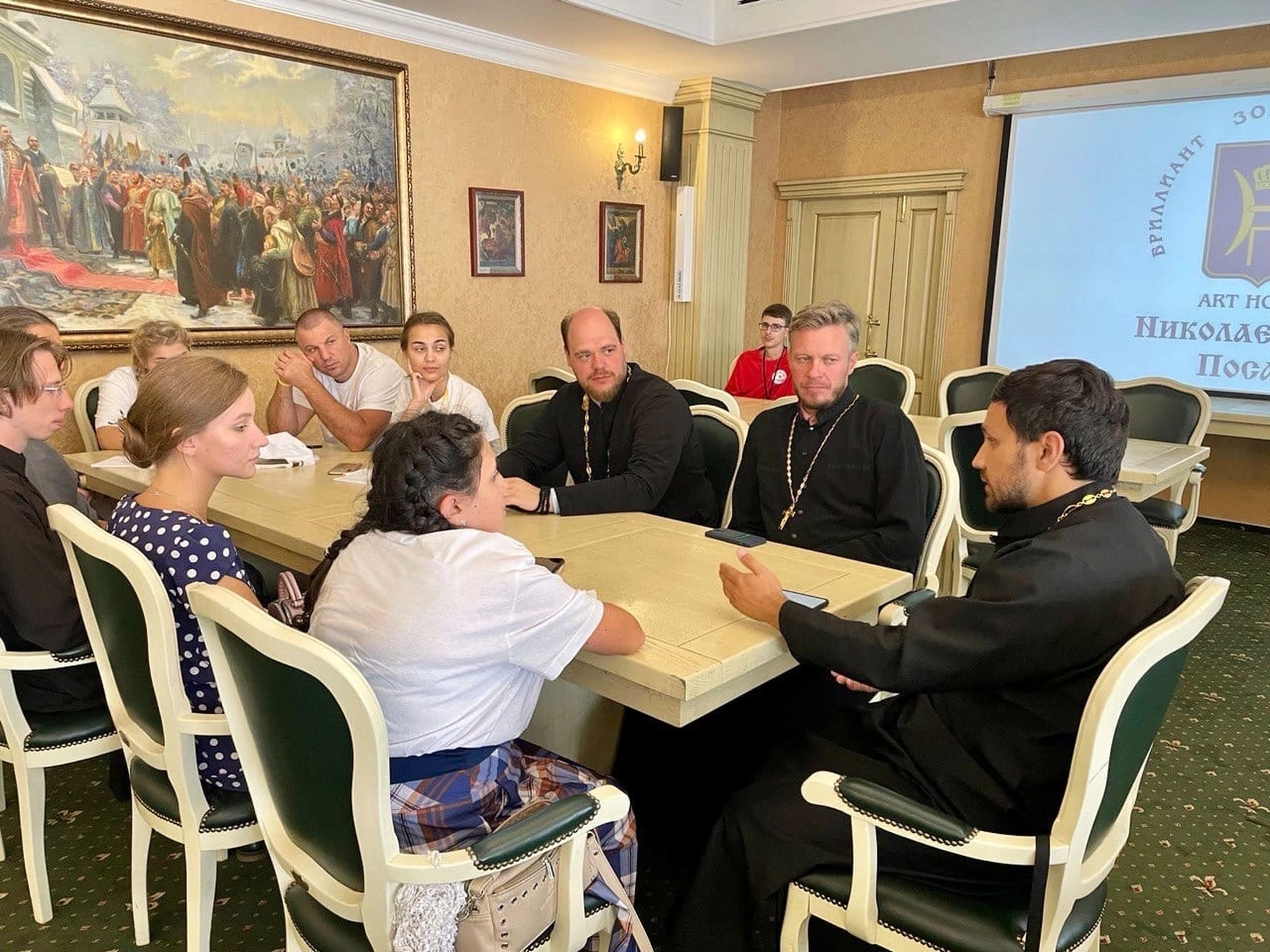 В арт-отеле состоялись беседы с руководителем молодёжного отдела Тихвинской епархии священником Геннадием Тихоновым, руководителем департамента молодёжной политики Владимирской области Е. В. Яниной и другими представителями молодёжного направления церковного служения.