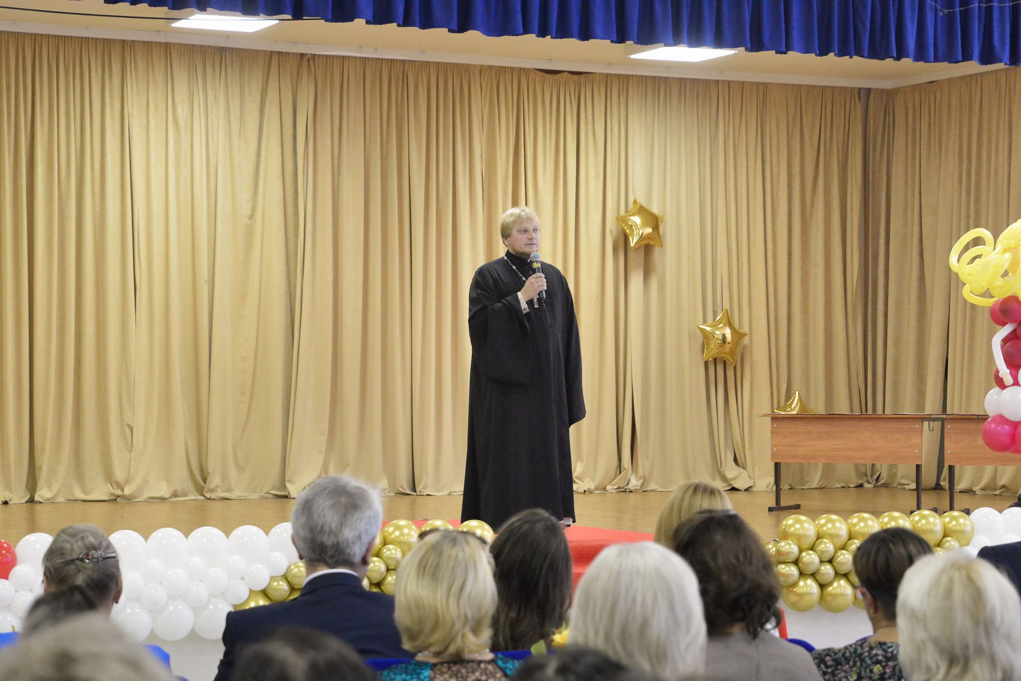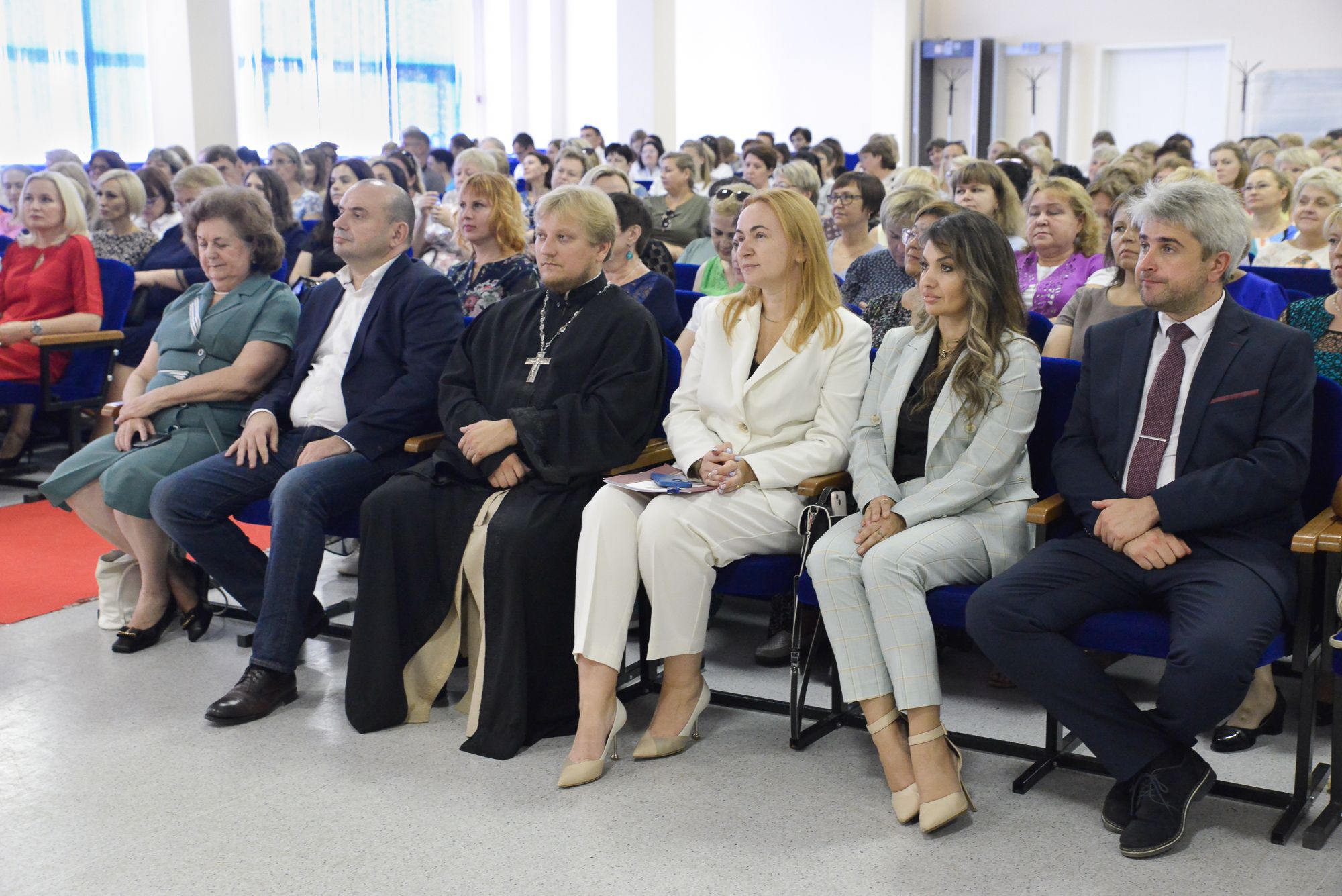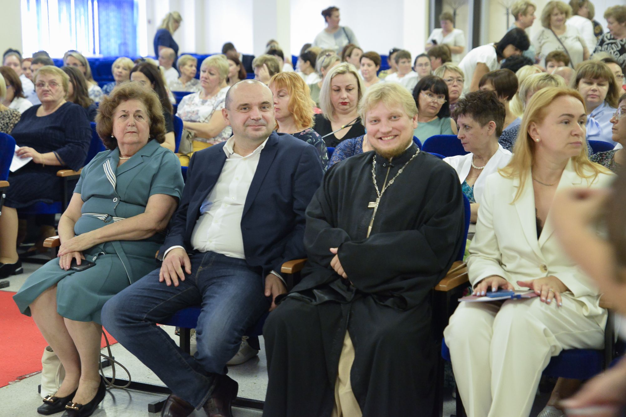 Отец Павел выступил перед участниками с приветственным словом, поздравил педагогов с началом нового учебного года и пожелал всем успешных трудов, здоровья и мудрости.