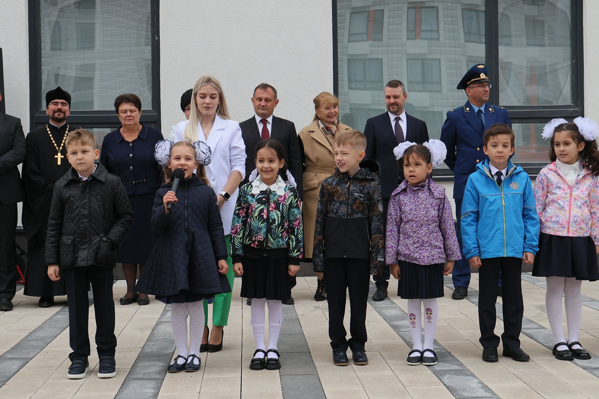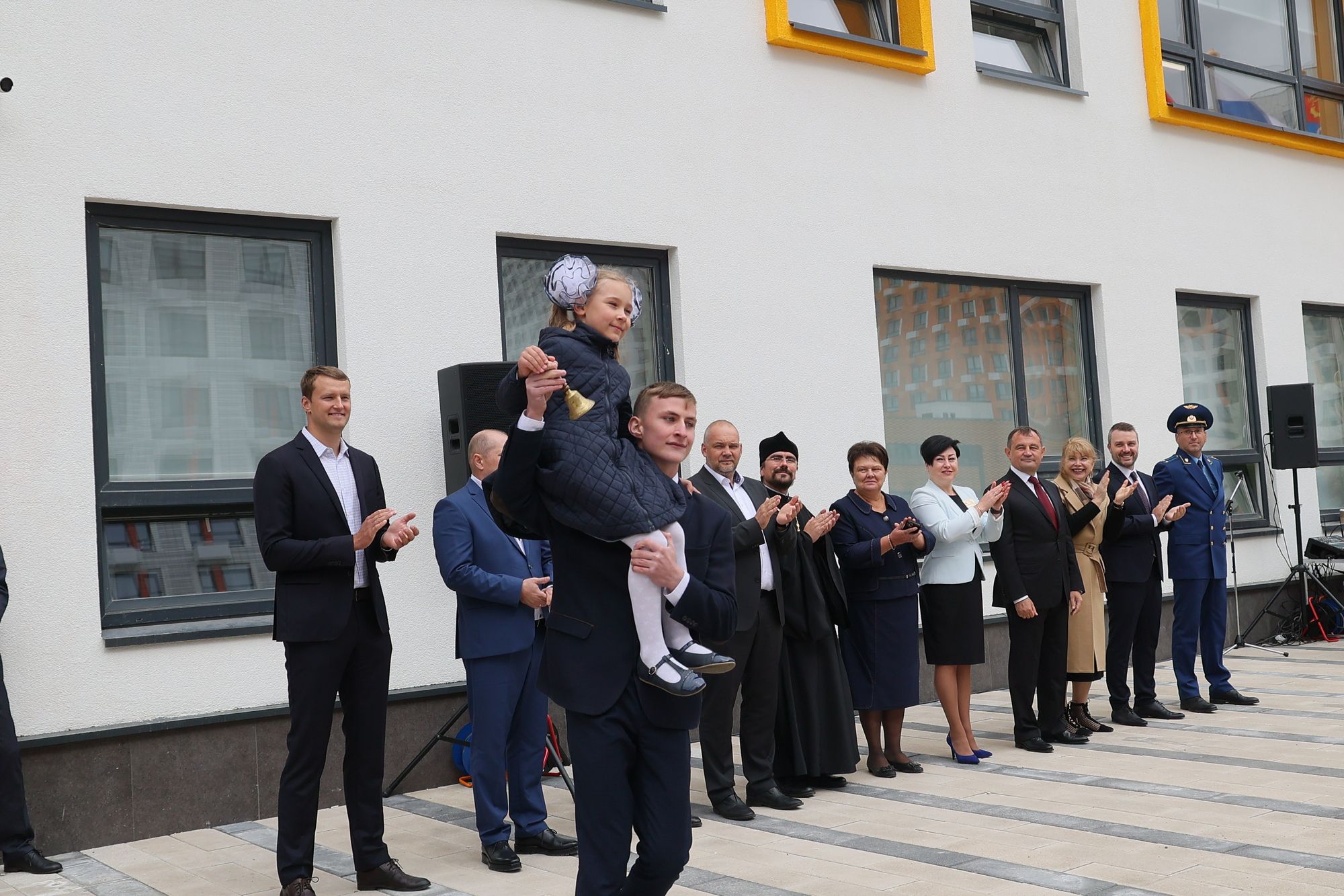 В новопостроенной школе №32 жилого комплекса «Измайловский лес» новый учебный год открыли председатель Московской областной думы И. Ю. Брынцалов, благочинный церквей Балашихинского округа священник Михаил Конюхов и представители городской администрации.