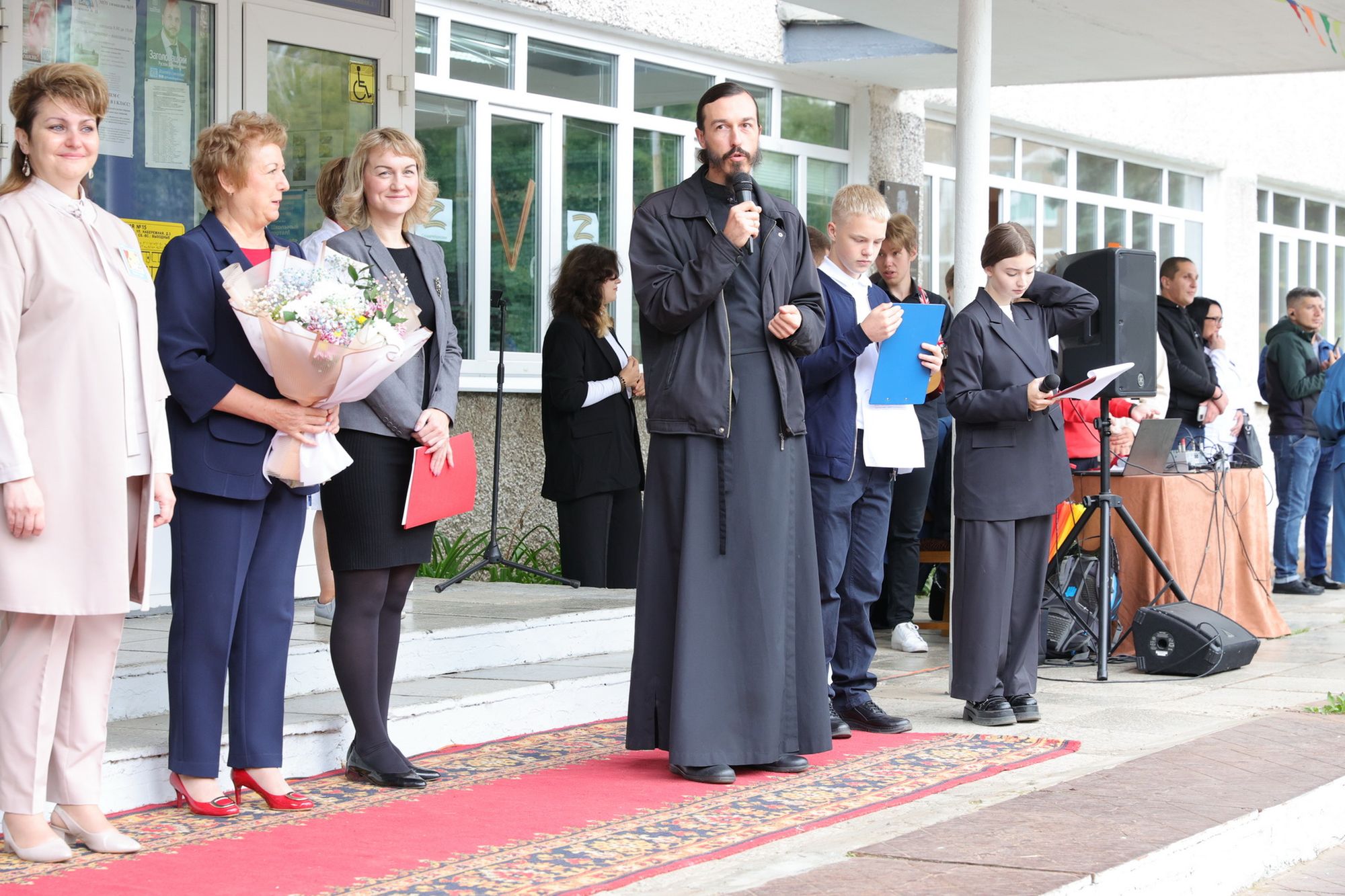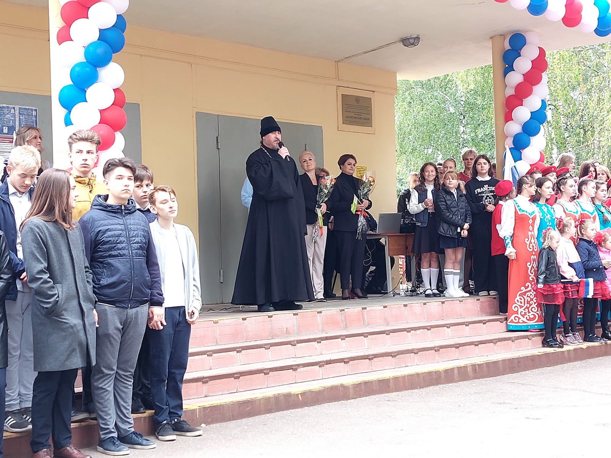 Настоятель Крествовоздвиженского храма протоиерей Алексий Левченко произнёс напутственное слово в школе №12.