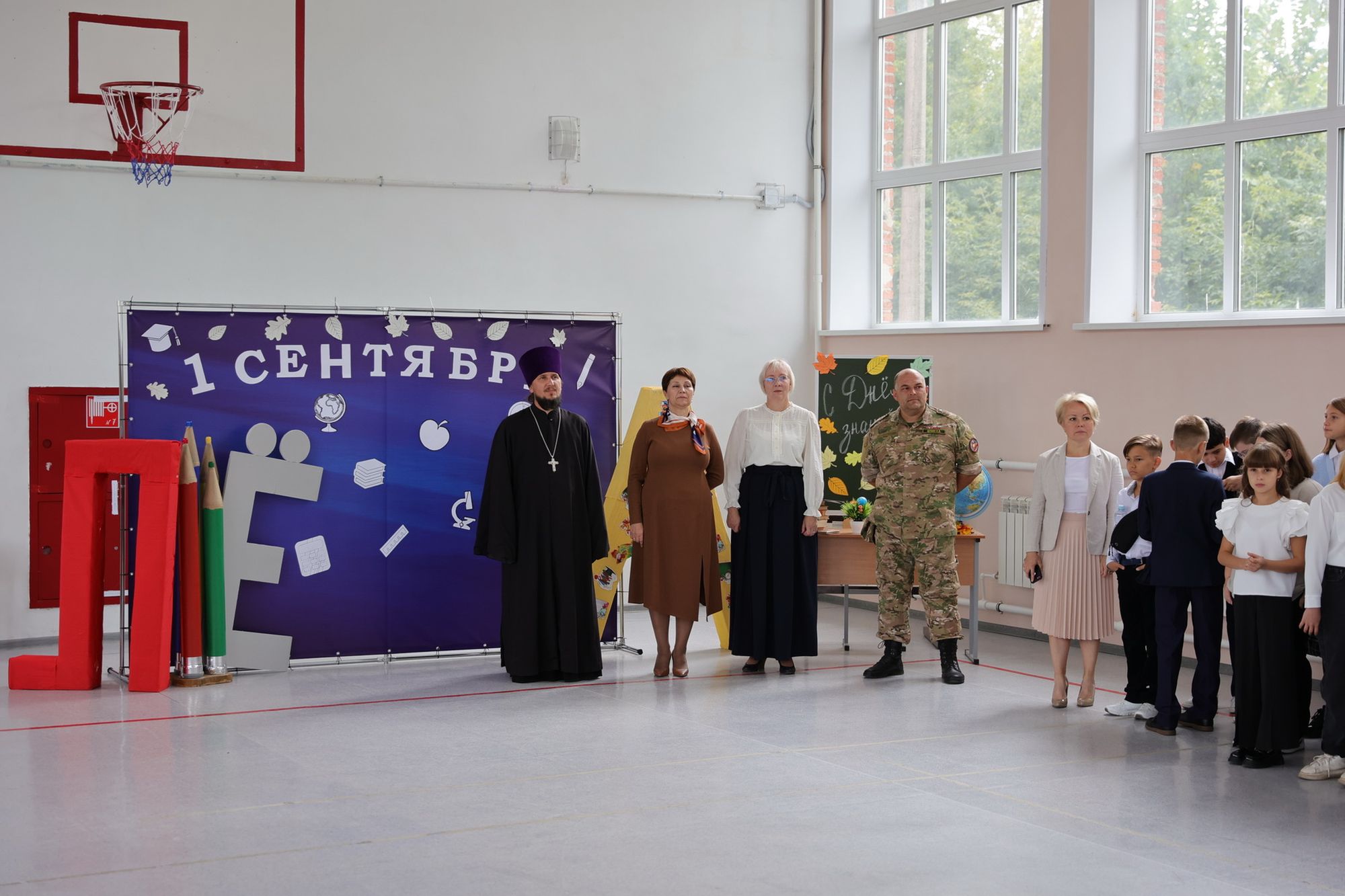 В городской школе №4 на торжественной линейке с поздравлениями выступали депутат Государственной Думы Г. О. Панин, первый заместитель министра образования Московской области Е. А. Михайлова, депутат Московской областной думы Э. Н. Живцов и глава Орехово-Зуевского городского округа Р. В. Заголовацкий. От лица благочиния присутствовал клирик Богородицерождественского собора священник Александр Баранчиков.