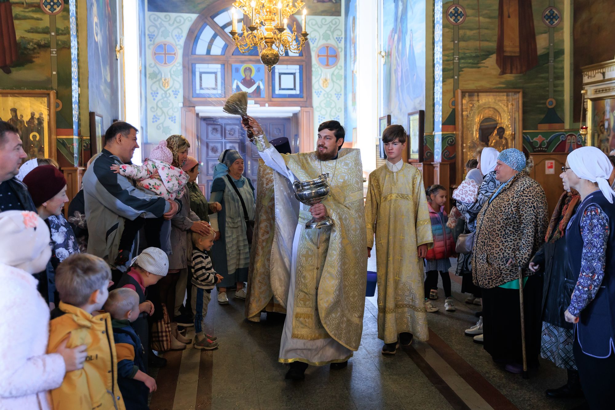 На территории собора было организовано благотворительное чаепитие, а для детей мастер-класс по рисованию.