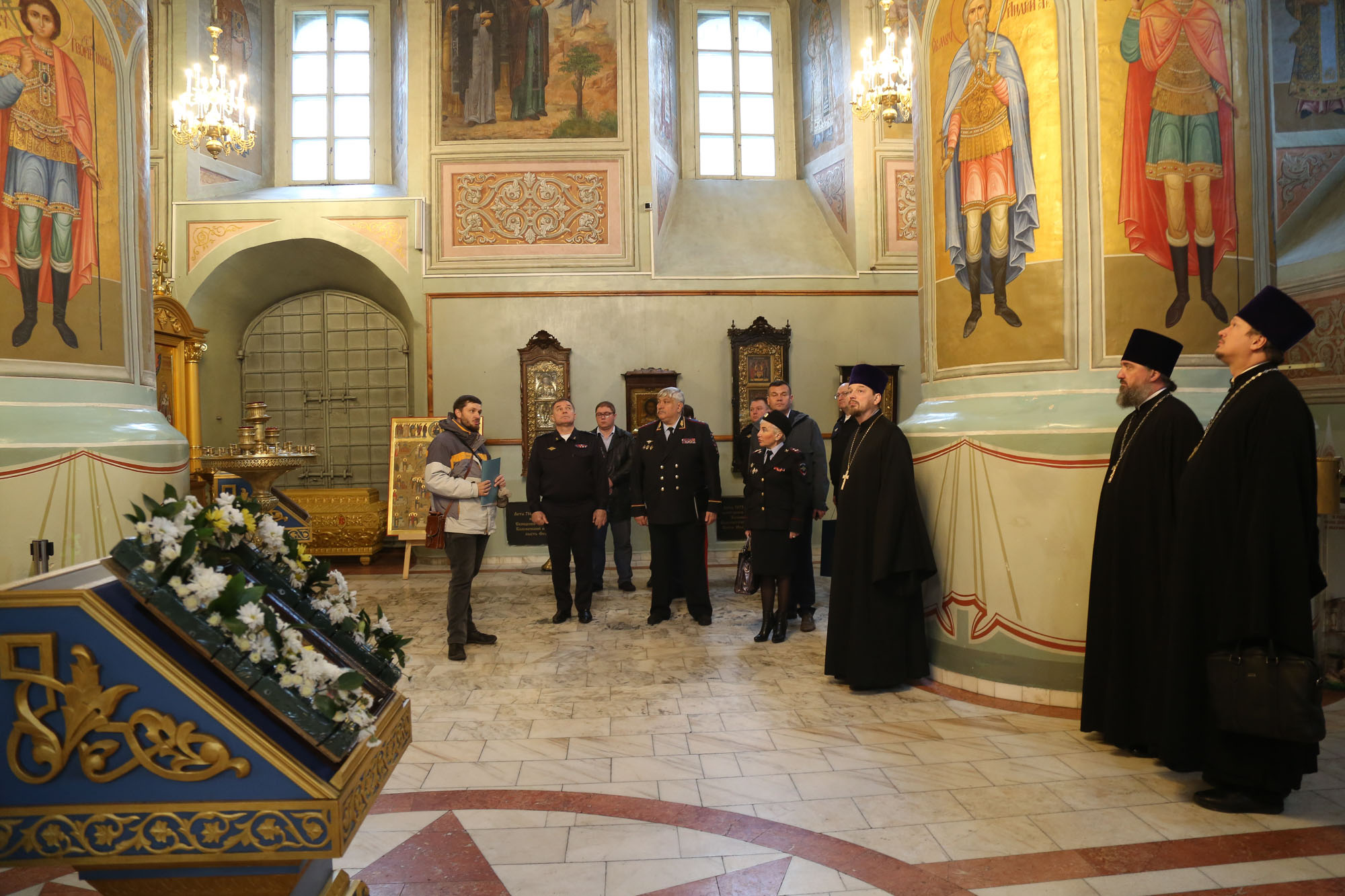 Перед началом мероприятия для гостей была организована экскурсия по соборной площади и находящимся на ней Успенскому собору и Тихвинскому храму, после чего они направились в Коломенское епархиальное управление.