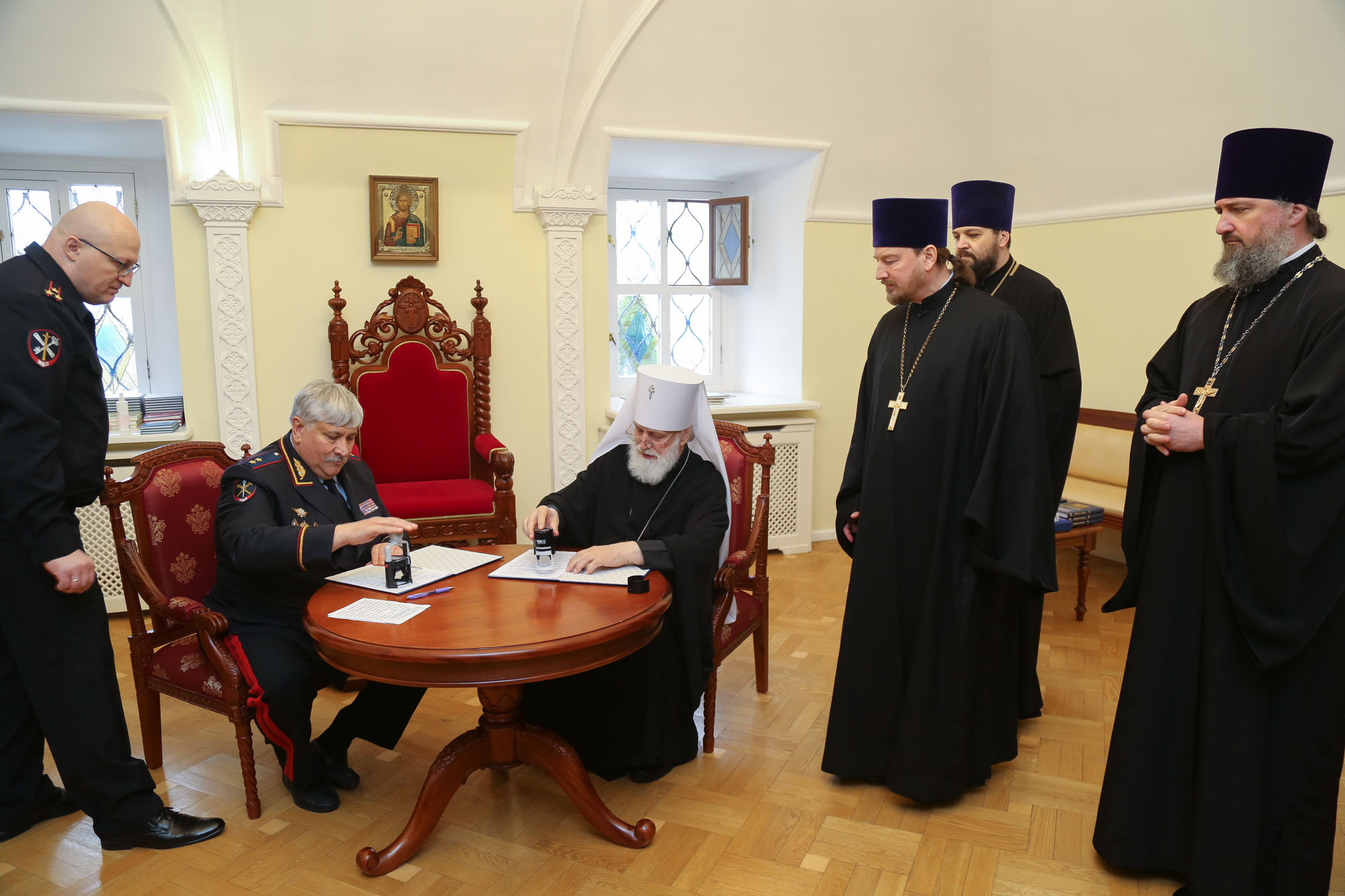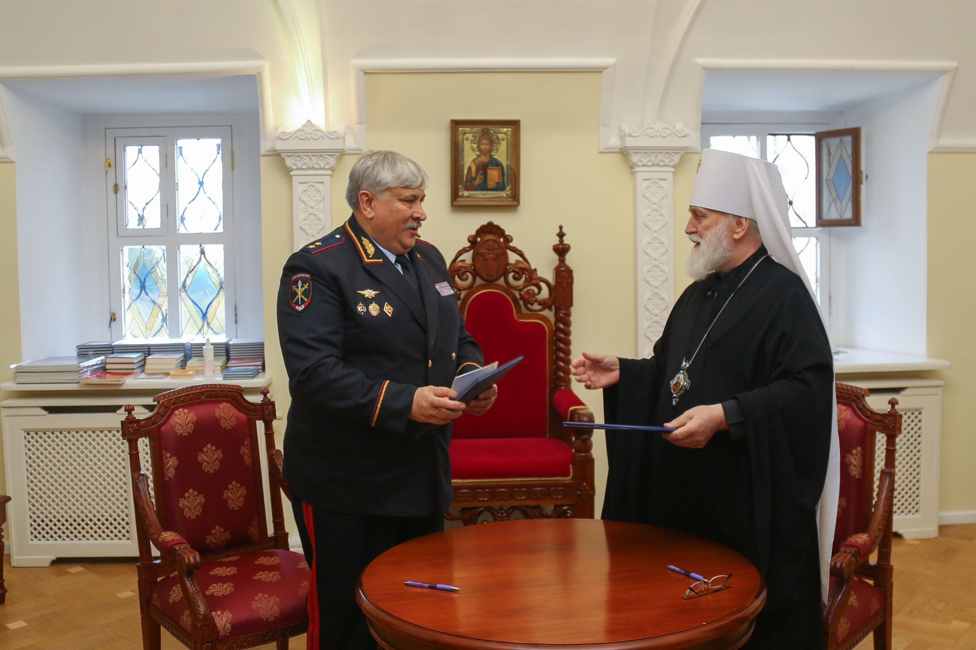 В торжественной обстановке митрополит Крутицкий и Коломенский Павел и начальник Главного Управления МВД России по Московской области генерал-лейтенант полиции Виктор Пауков поставили подписи под документом.