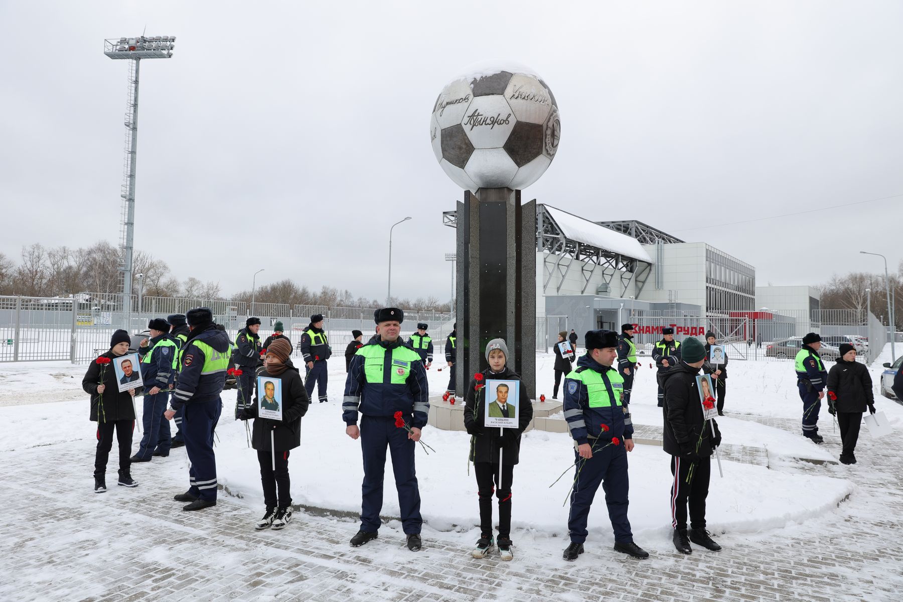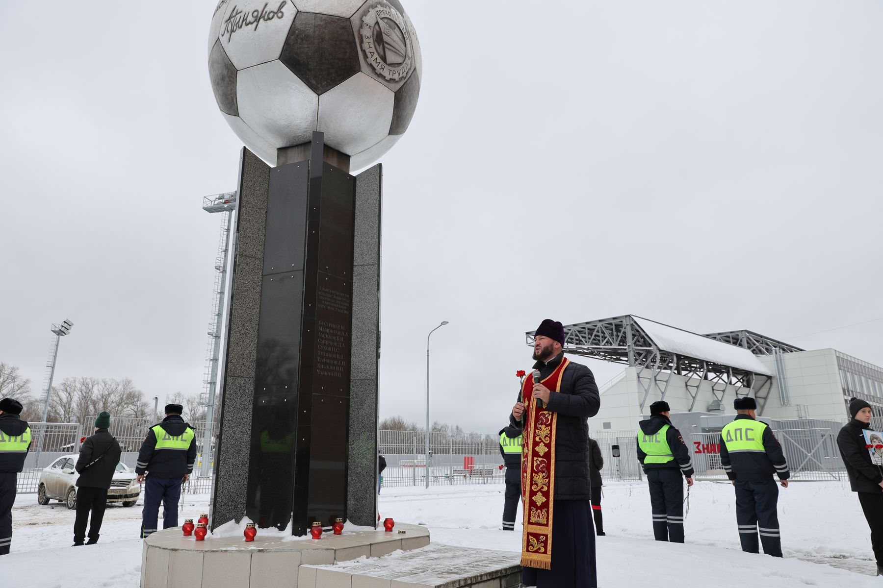 Затем на городском стадионе у памятника погибшим в 2004 году в результате дорожно-транспортного происшествия футболистам Орехово-Зуевской команды «Знамя Труда» была совершена панихида, за которой молились генеральный директор футбольного клуба «Знамя Труда» С.И. Бондарь, юные футболисты, родственники погибших, сотрудники дорожной автоинспекции.