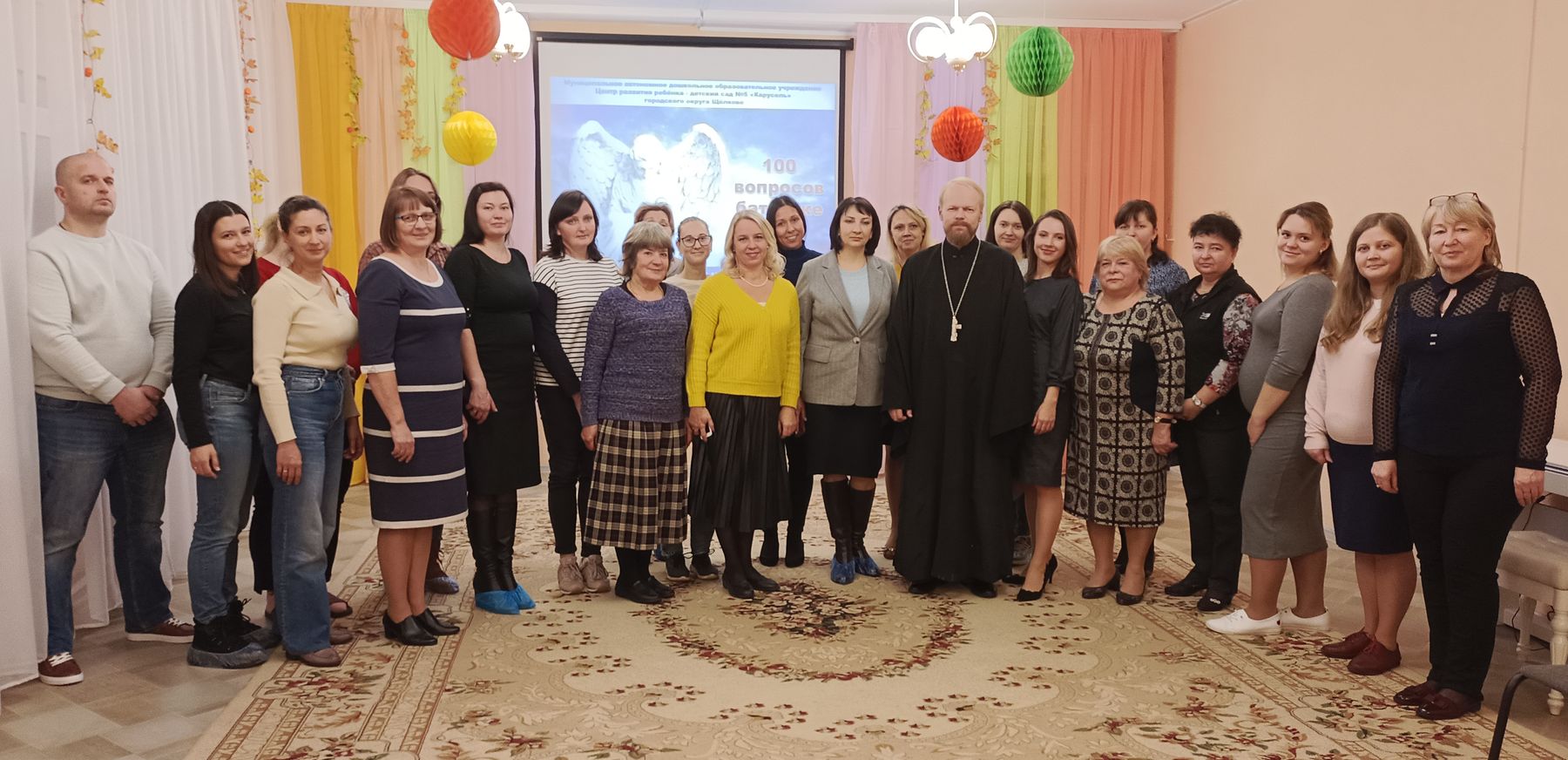 22 ноября в детском саду «Светлячок» г. Щёлково состоялась ежегодная традиционная встреча «Сто вопросов к батюшке». Родители воспитанников и сотрудники учреждения общались с клириком Троицкого собора г. Щёлково священником Павлом Чекалиным. Были заданы вопросы о православном воспитании детей, о вере, традициях и правилах, о христианской жизни и многом другом, что беспокоило участников встречи.