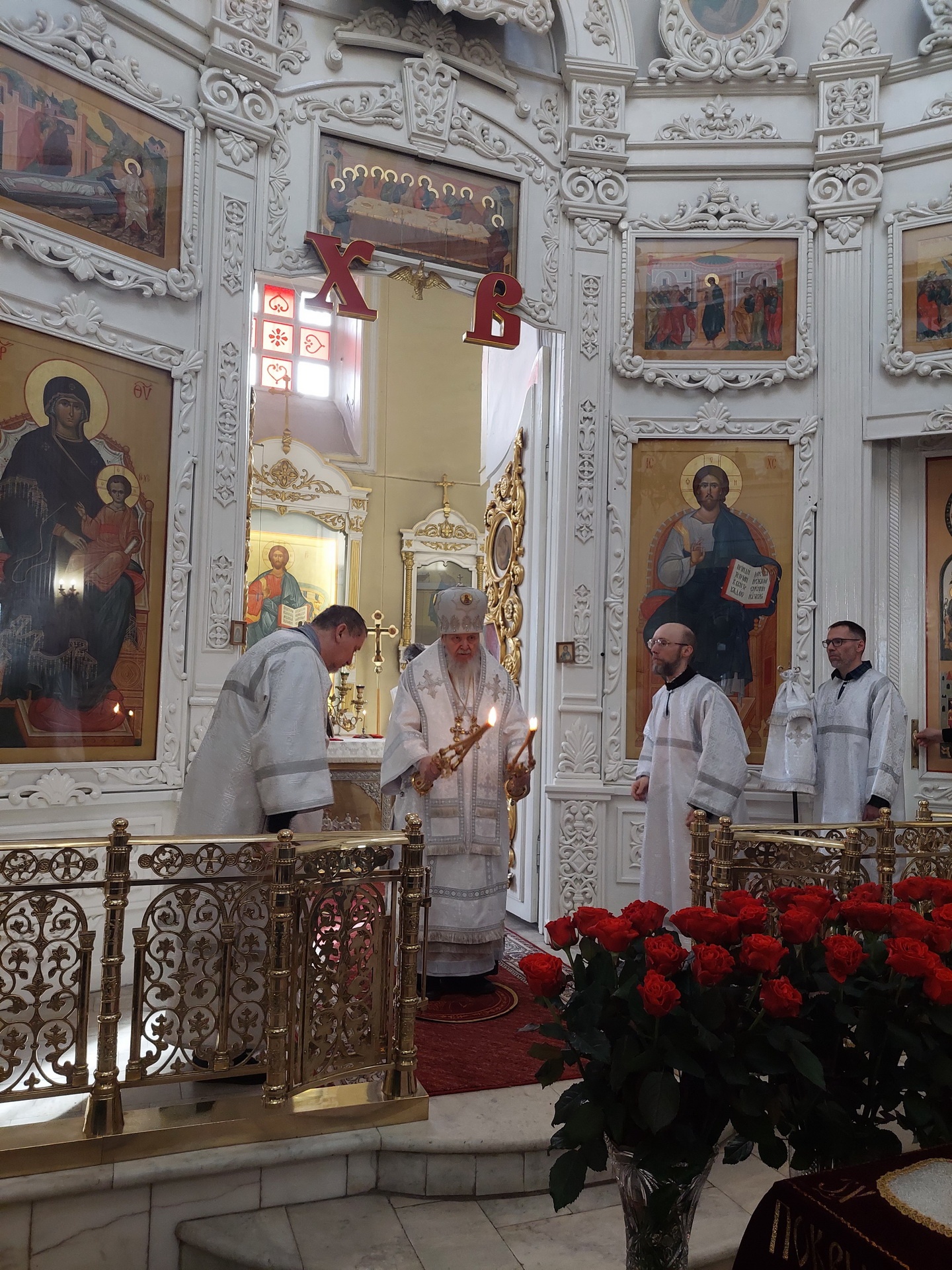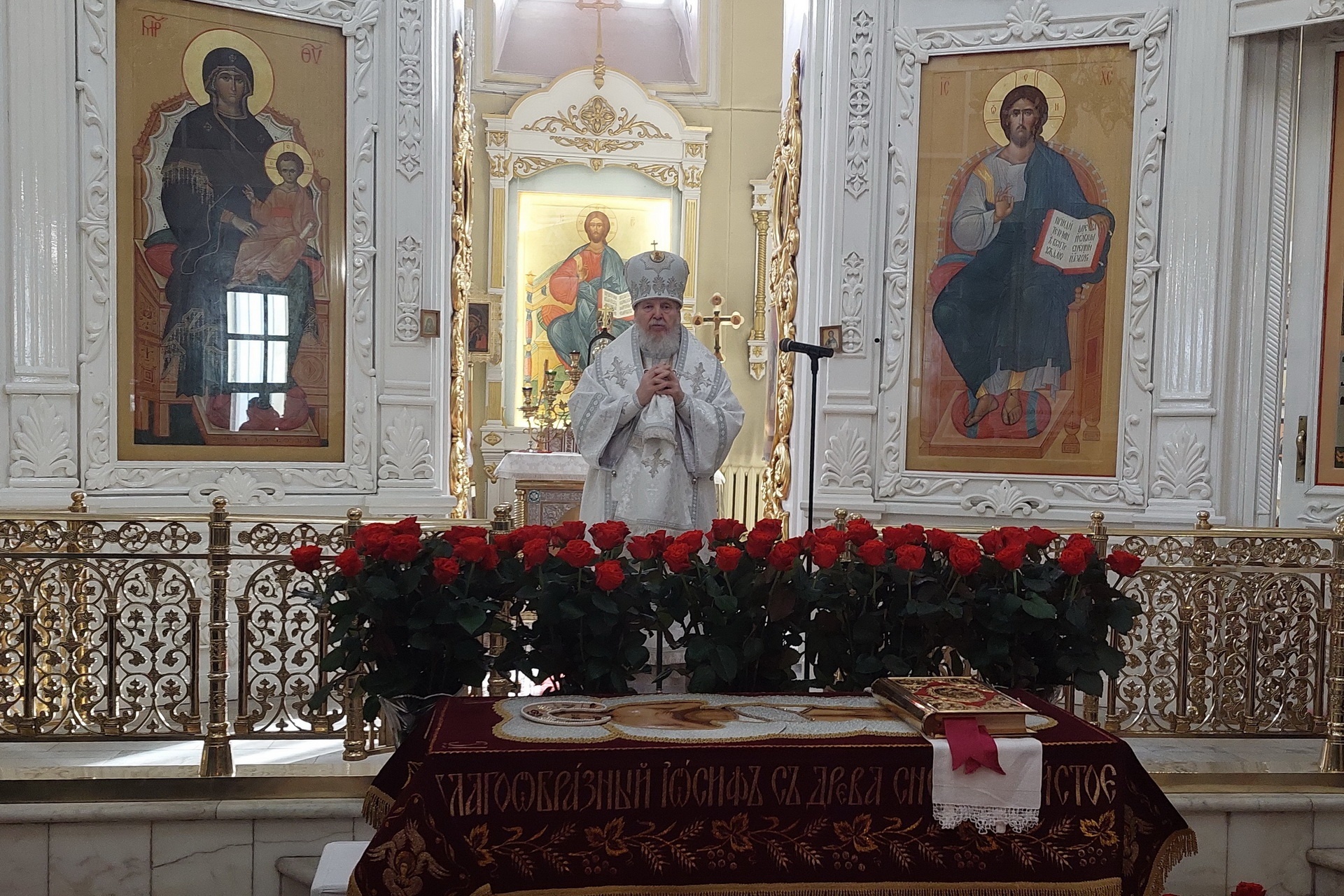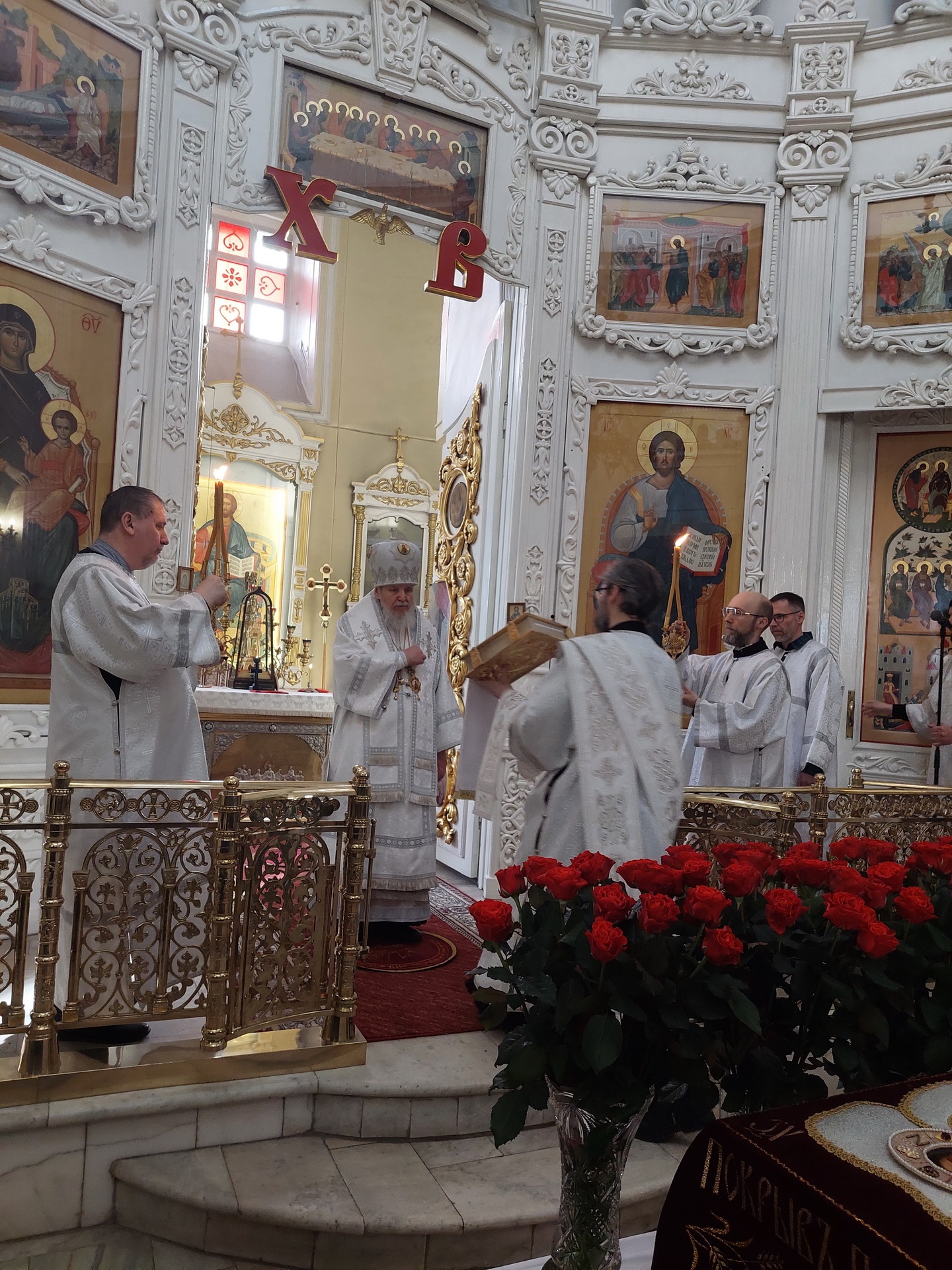 По исполнении 17-й кафизмы с «Похвалами» и канона, после Великого славословия, при пении погребального «Святый Боже» был совершён крестный ход с плащаницей Спасителя, а затем прочитаны положенные в этот день по церковному уставу чтения из книги пророка Иезекииля, Апостола и Евангелия. В завершение богослужения Владыка Николай обратился к богомольцам с архипастырским словом.