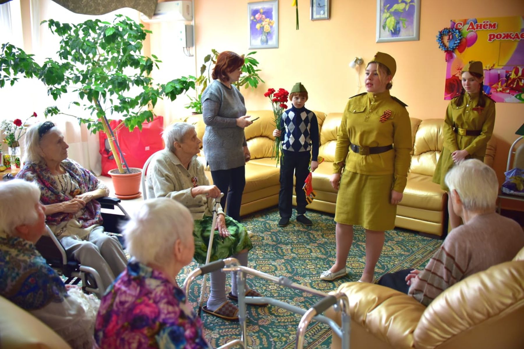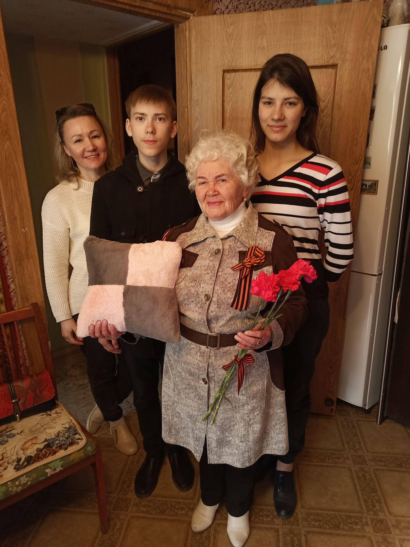 Волонтеры действующей при Богоявленском соборе г. Ногинска группы «Милосердие» посетили на дому ветеранов, детей Великой Отечественной войны и тружеников тыла. В качестве подарка к Дню Победы бабушки получили букет алых гвоздик, георгиевские ленты, изготовленные учащимися центра образования № 9, и декоративные подушки, сшитые помощниками группы «Милосердие». В каждом доме прозвучали песни военных лет в исполнении волонтеров. Подарки, подготовленные волонтерами, были переданы также ветеранам, проживающим в пансионате для престарелых и инвалидов «Ногинский».