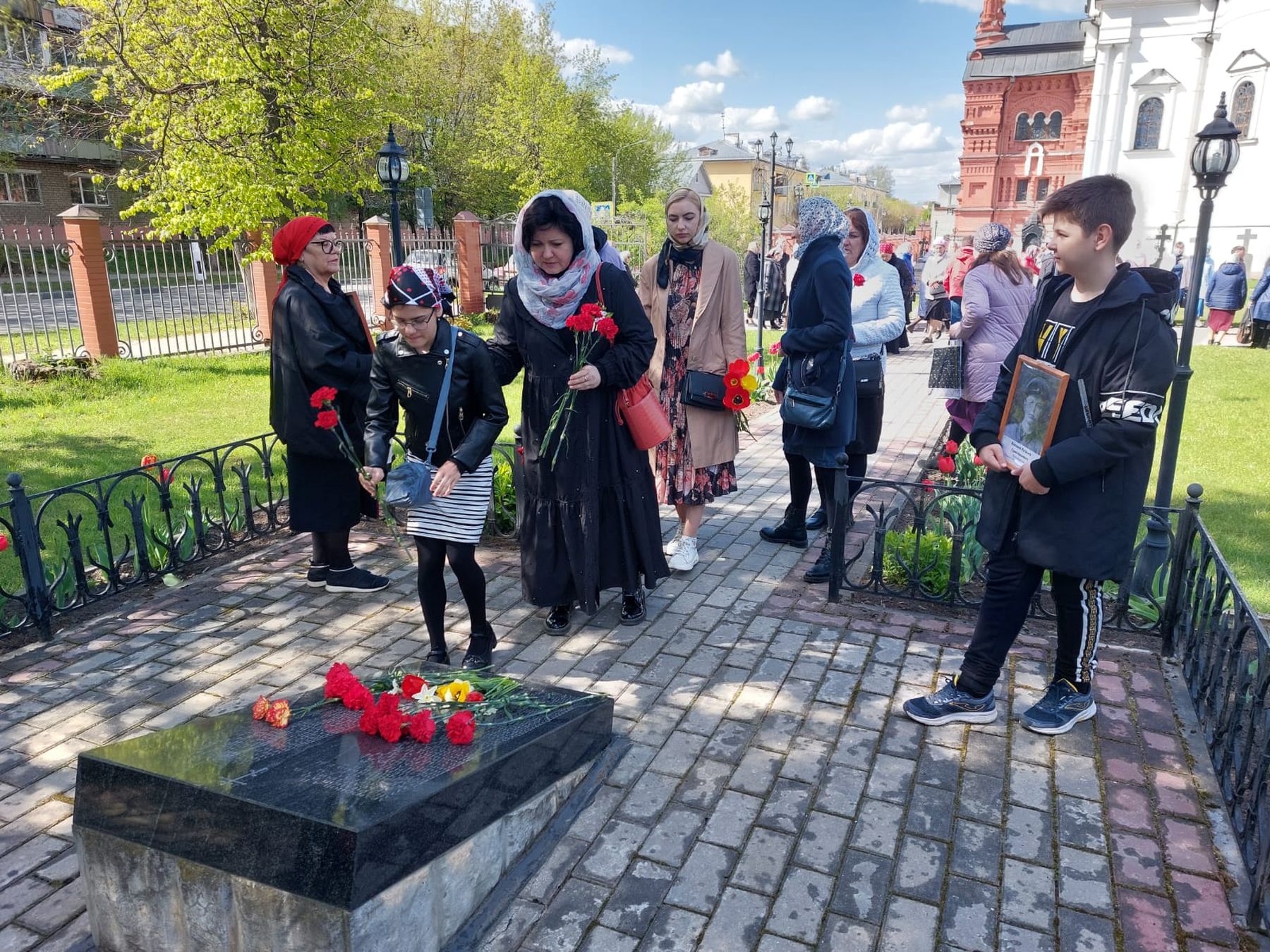 9 мая учащиеся воскресной школы при Тихвинском храме г. Ногинска, их родители и педагоги возложили цветы к обелиску воинам-землякам, отдавшим свои жизни за Победу в Великой Отечественной войне, который расположен в ограде храма. Накануне территория возле обелиска была благоустроена прихожанами.