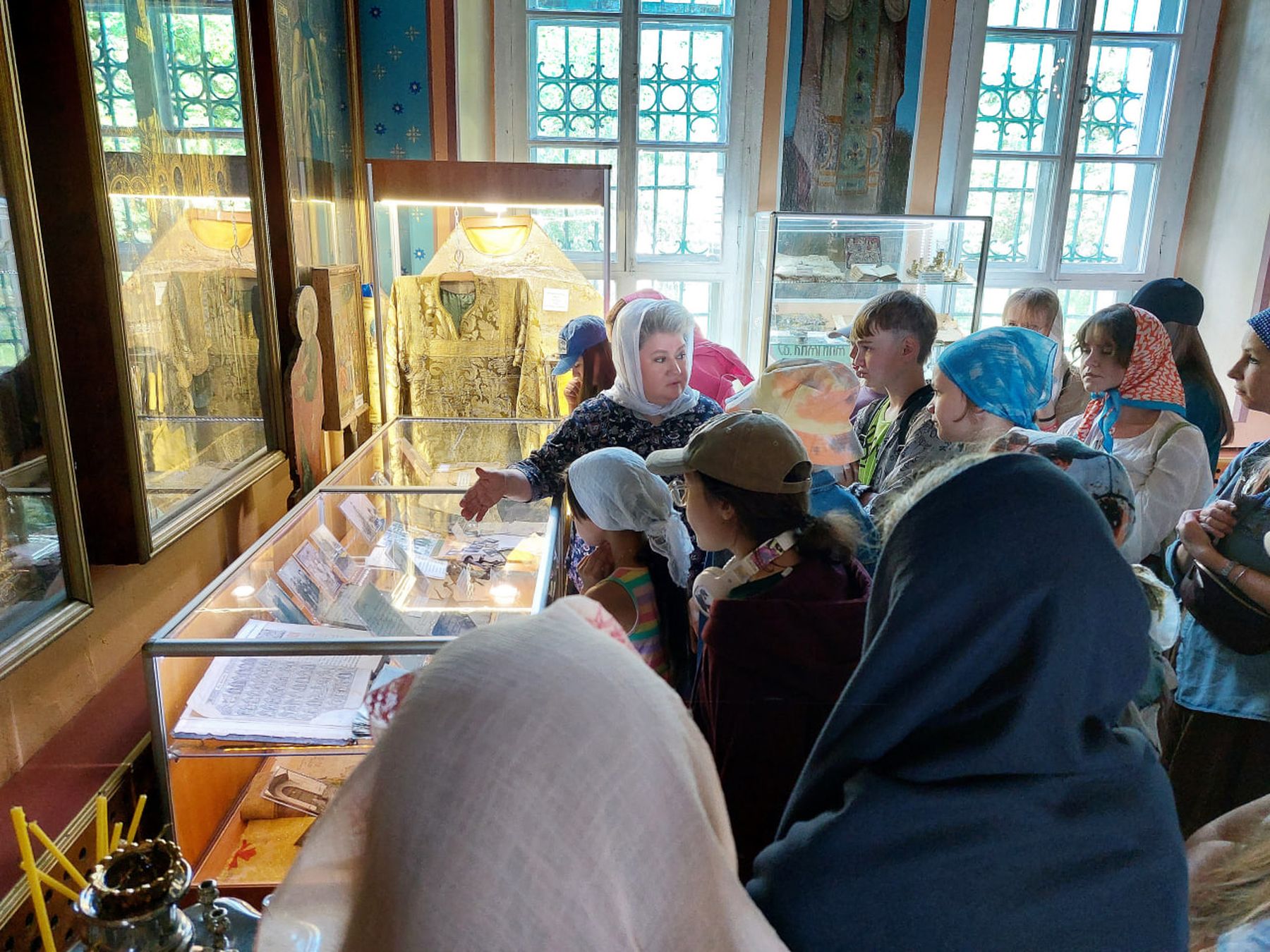 Директор воскресной школы А. Ю. Томашевская рассказала об истории и настенной живописи храма, познакомила детей с приходским музеем.