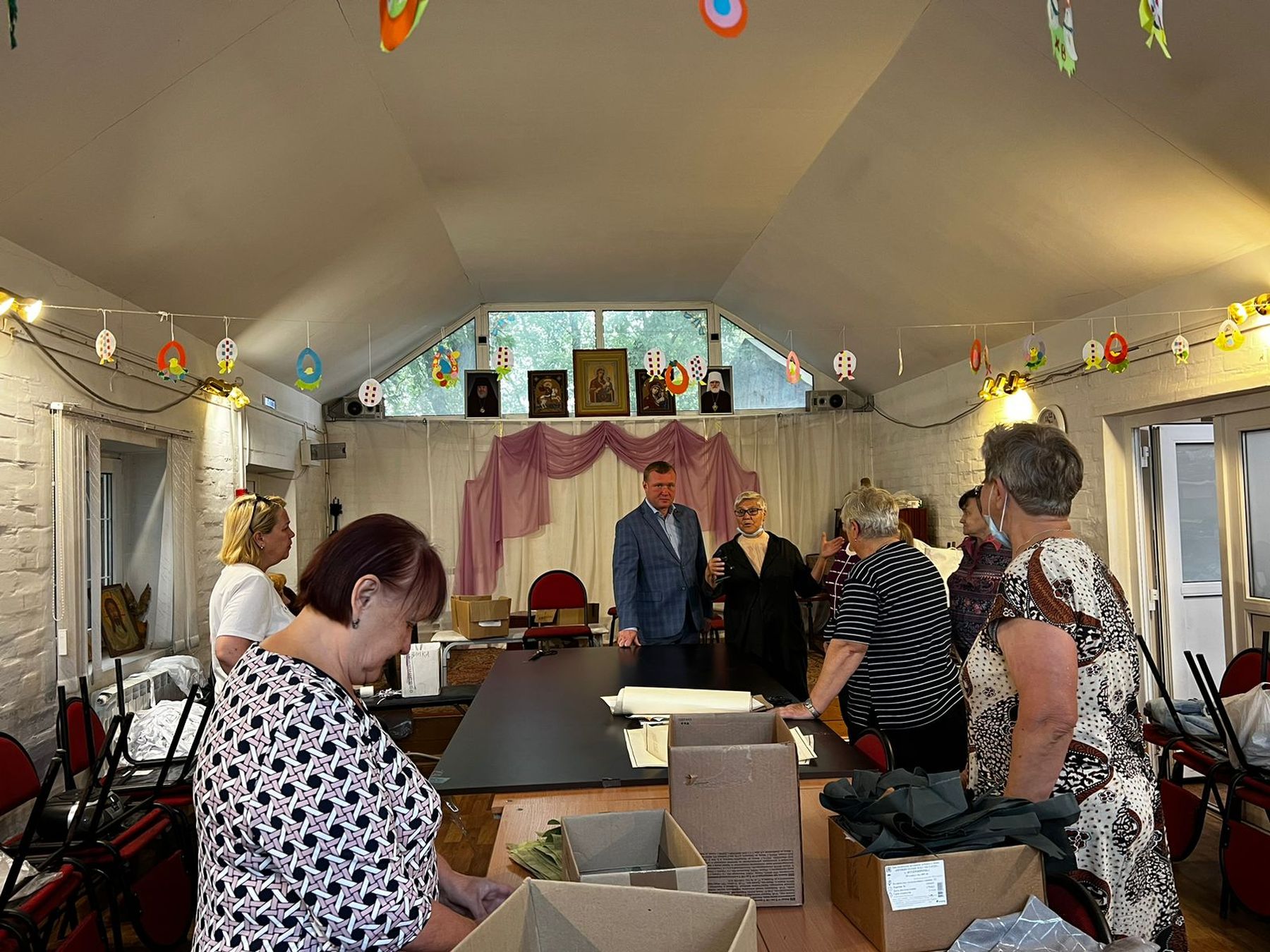 6 сентября депутат Московской областной думы М. А. Коркин встретился с участниками волонтёрской группы «Шьём и вяжем для СВОих», которая по благословению благочинного Ликино-Дулёвского церковного округа священника Антония Рыжакова существует при Иоанно-Богословском храме г. Ликино-Дулёво.