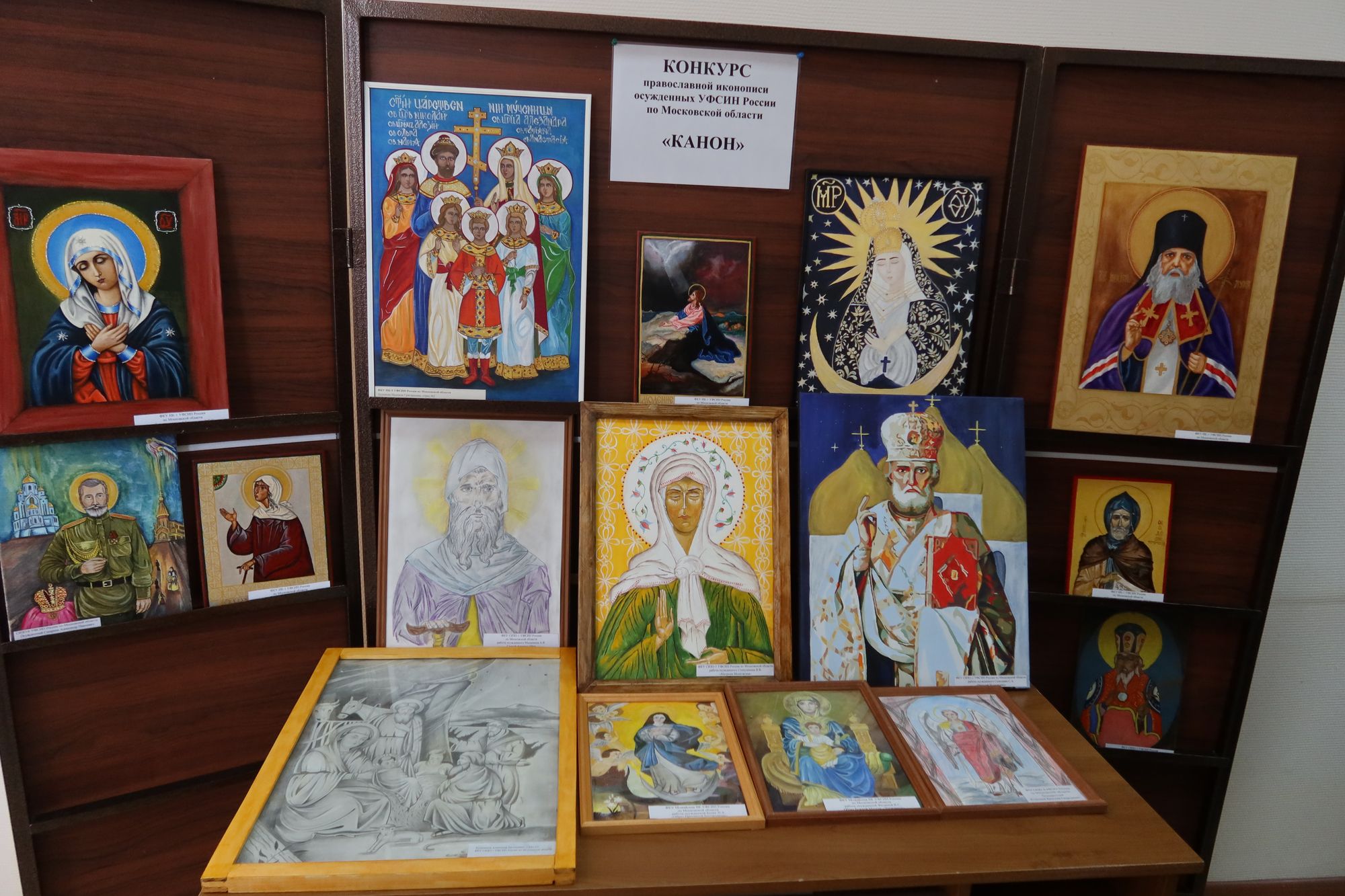 Работы, которые стали победителями, принадлежат осуждённым, отбывающим наказание в исправительной колонии № 1 (пос. Новое Гришино). Так, в номинации «Храмовая икона» первое место заняла творческая работа «Святой Лука Крымский». В номинации «Аналойная икона» победителем стала работа «Блаженная Ксения Петербургская». Сразу двум творческим работам жюри отдало первое место в номинации «Домашняя икона»: «Моление о чаше» и Образ Божией Матери «Умиление».