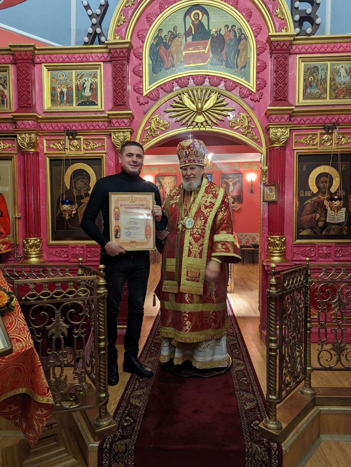 По окончании Литургии Его Преосвященство обратился к сослужившему духовенству и молящимся с архипастырским словом и вручил Патриаршие грамоты активным прихожанам и благотворителям.
