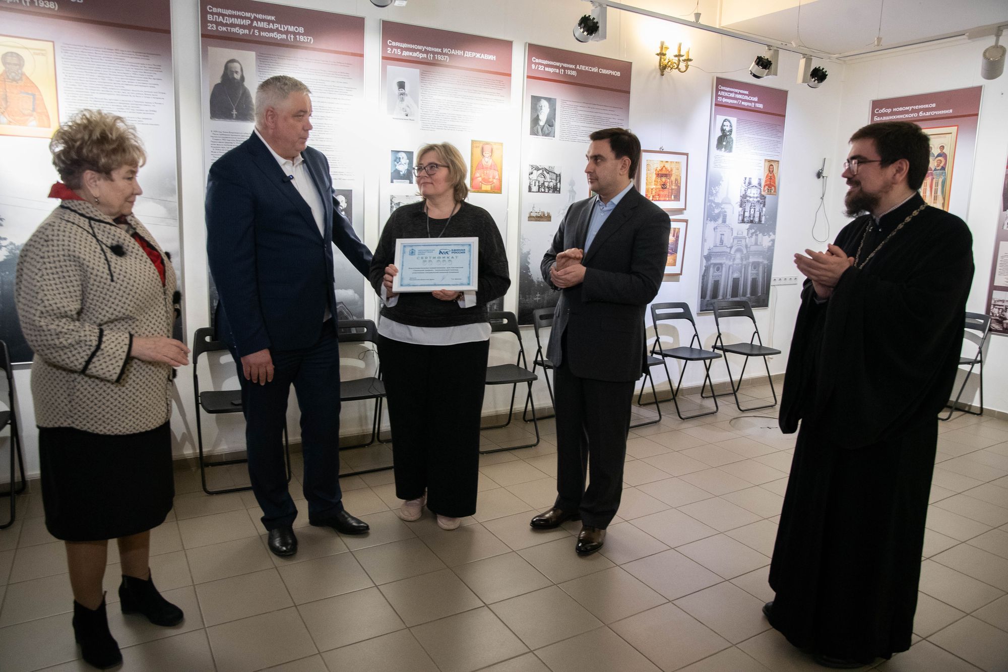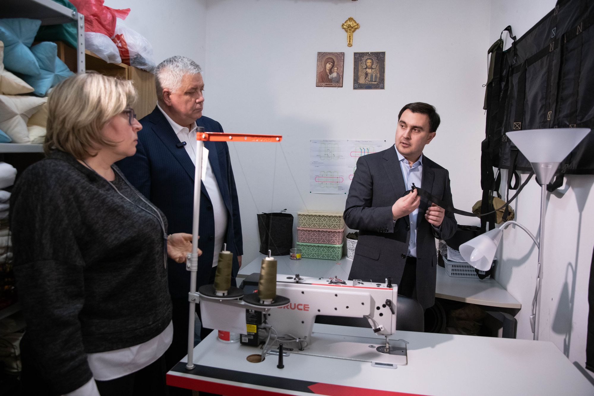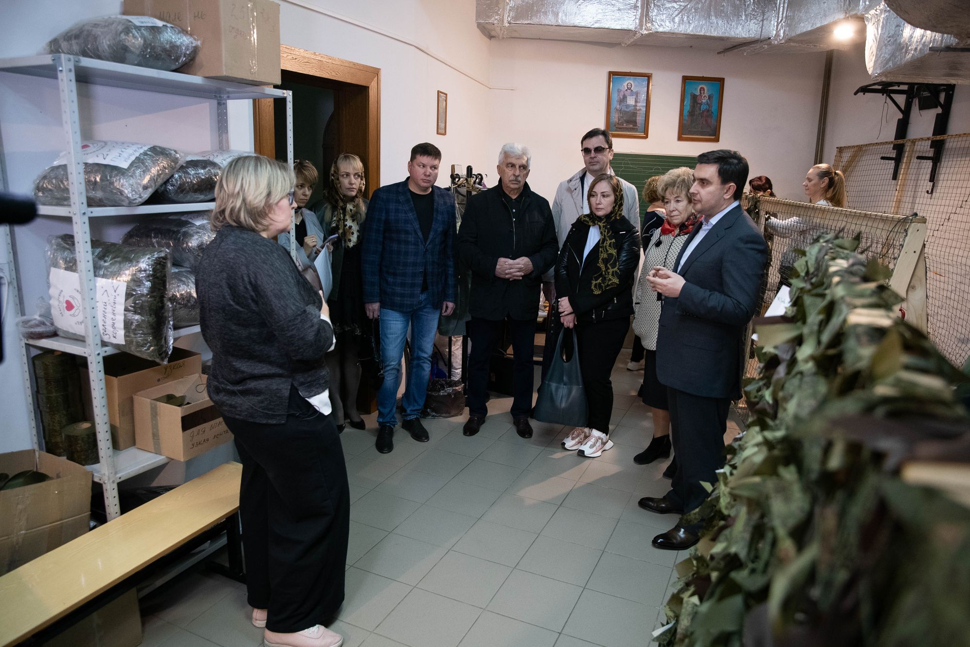 Благочинный Балашихинского церковного округа и настоятель храма священник Михаил Конюхов провёл высоких гостей в церковную мастерскую «Троицкий покров», где её руководитель А. И. Новик рассказала о деятельности мастерской, особенностях изготовления маскировочных сетей и других необходимых предметов в зоне проведения Специальной военной операции.