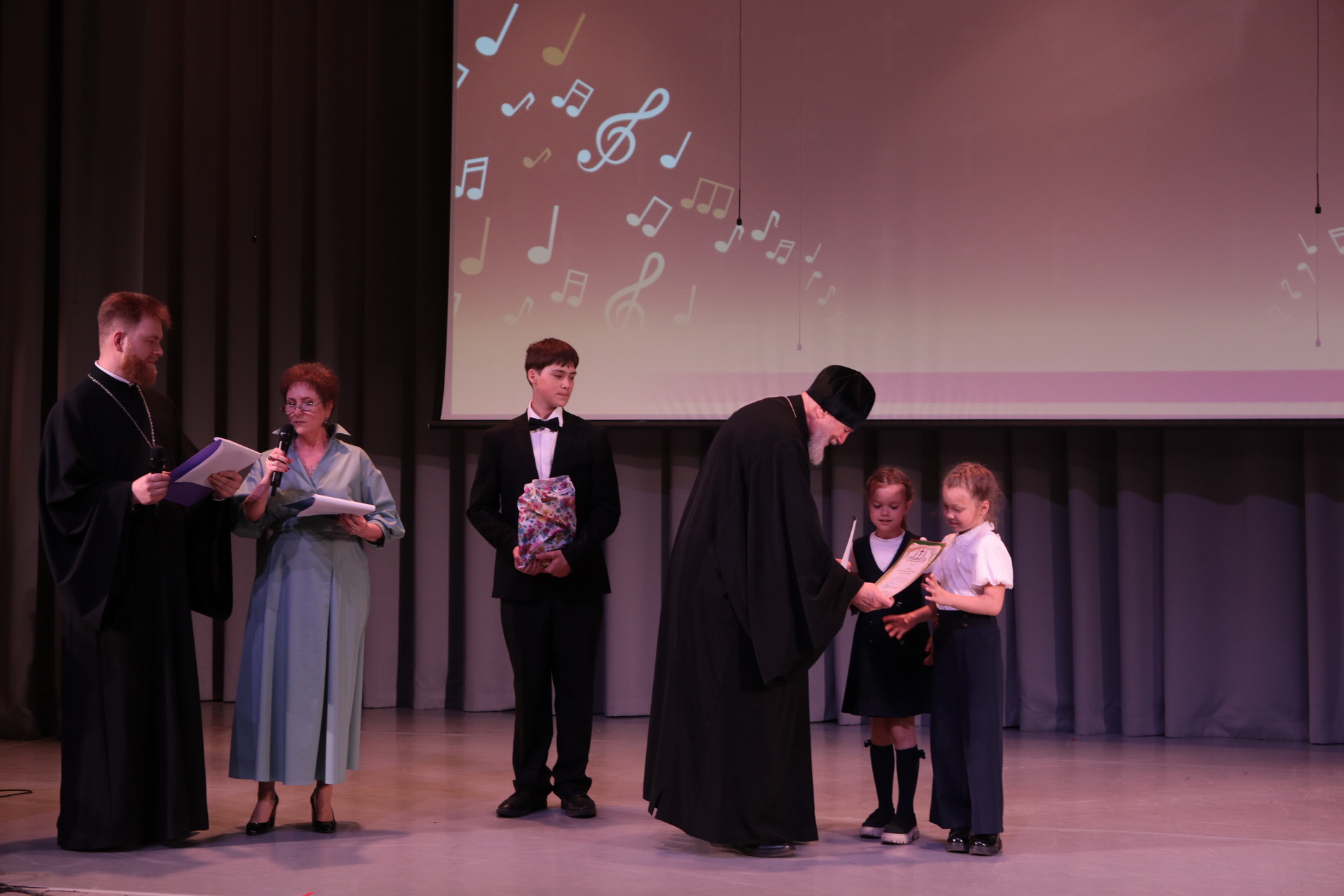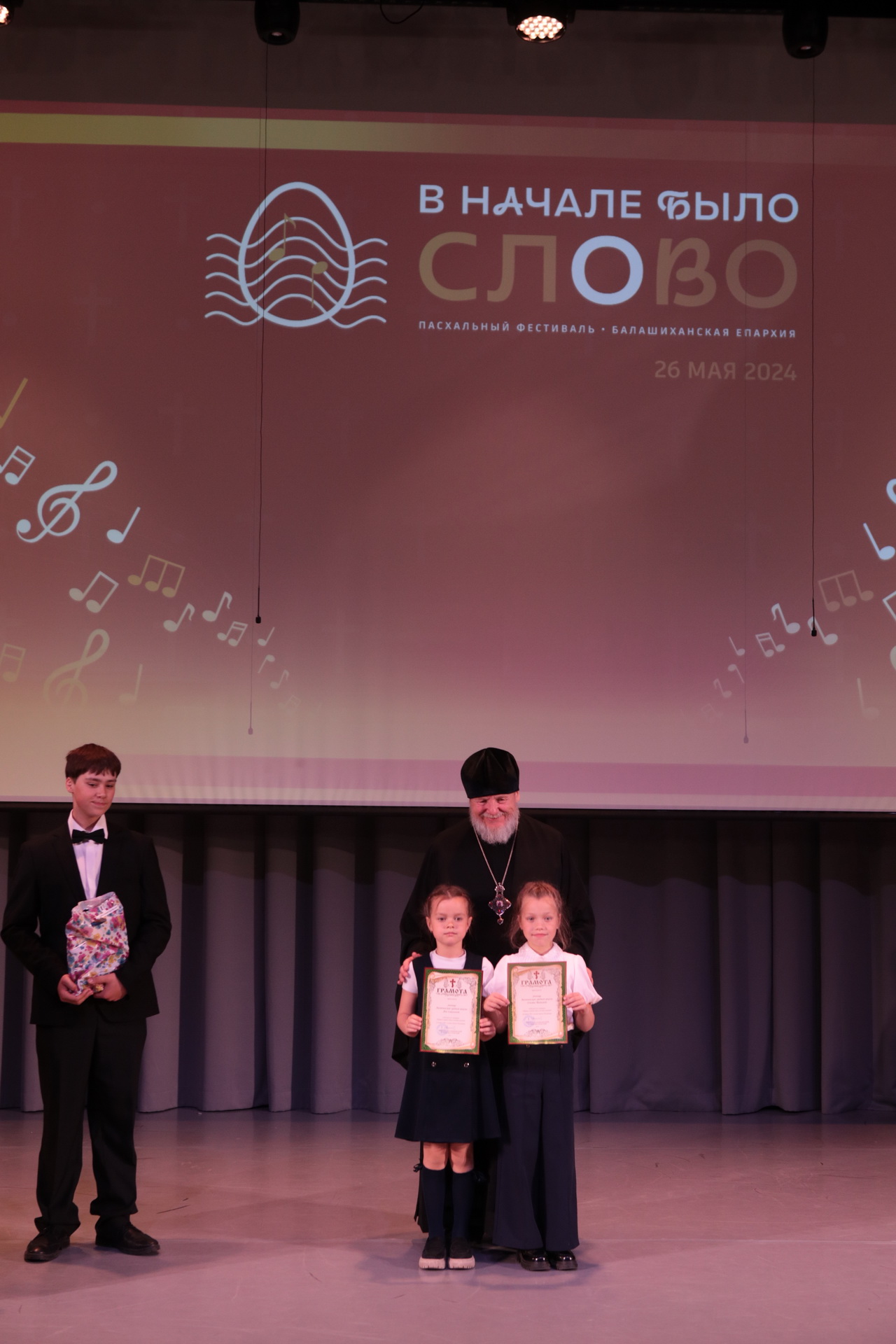 Гала-концерт начался пением хора духовенства Балашихинского благочиния (регент – Д.К. Кравцов), после чего Владыка Николай обратился к присутствующим с архипастырским словом и вручил почётные грамоты победителям конкурса «Православная книга своими руками».