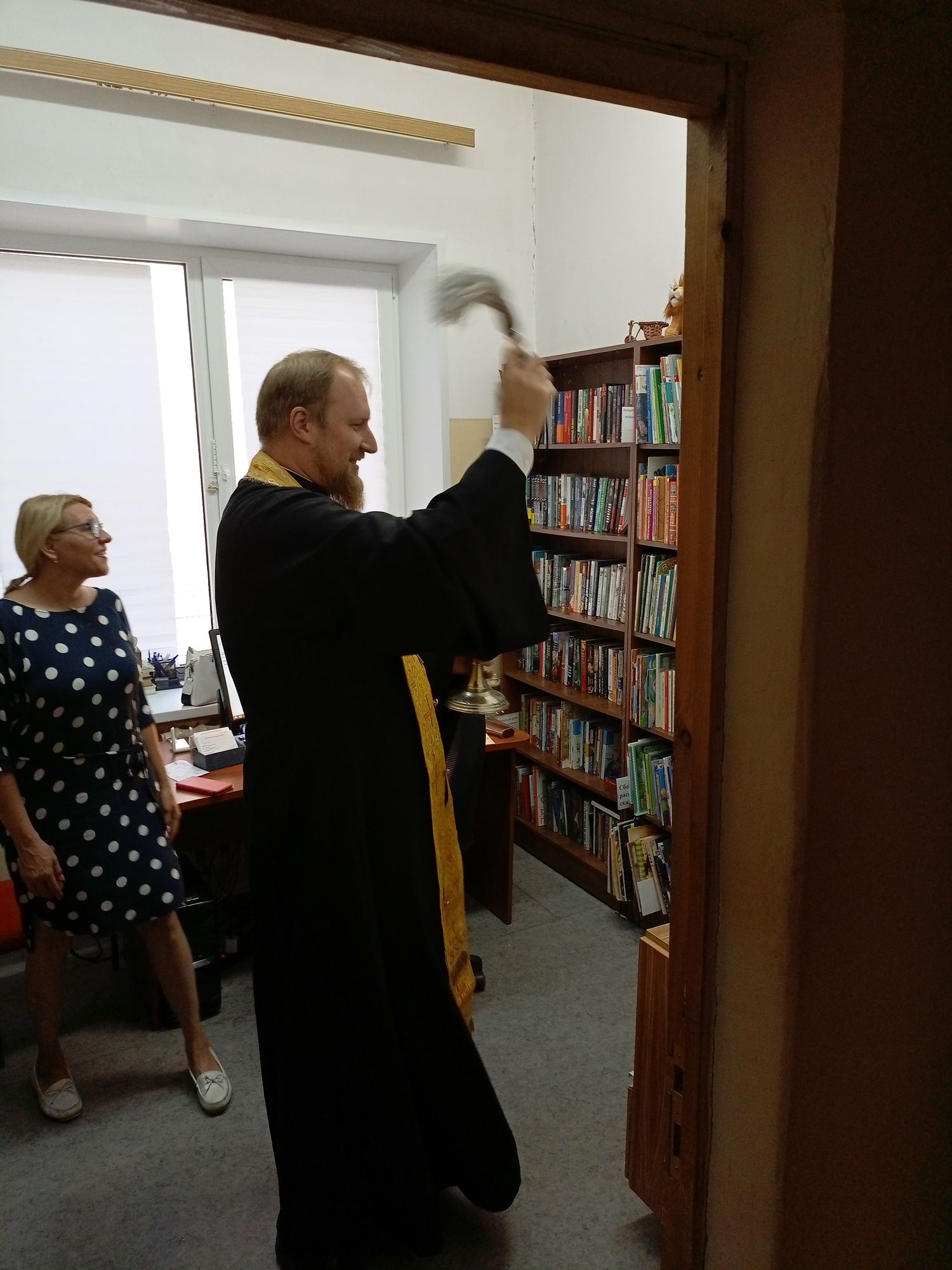 После освящения отец Павел передал в дар библиотеке книгу «Закон Божий».