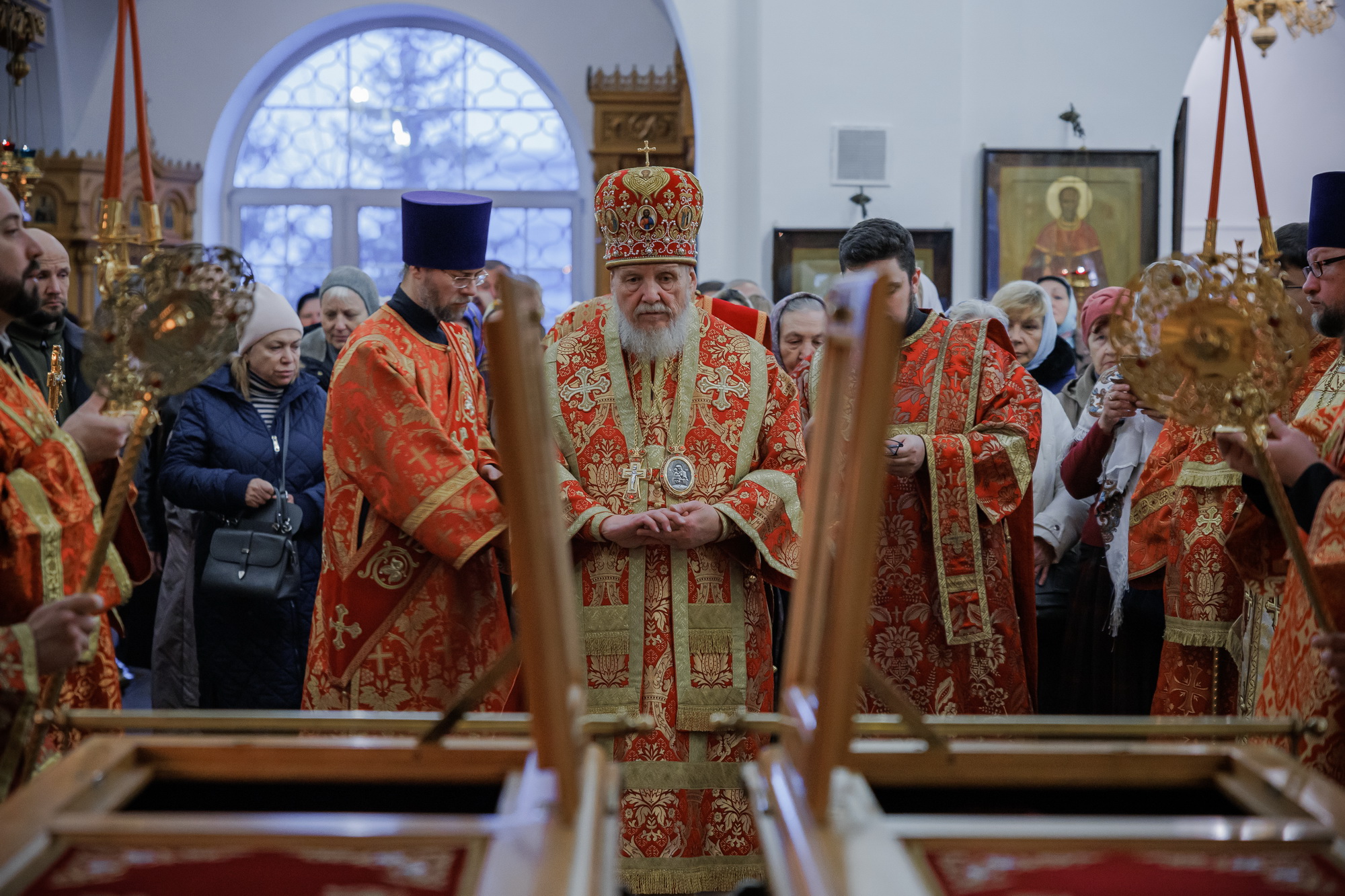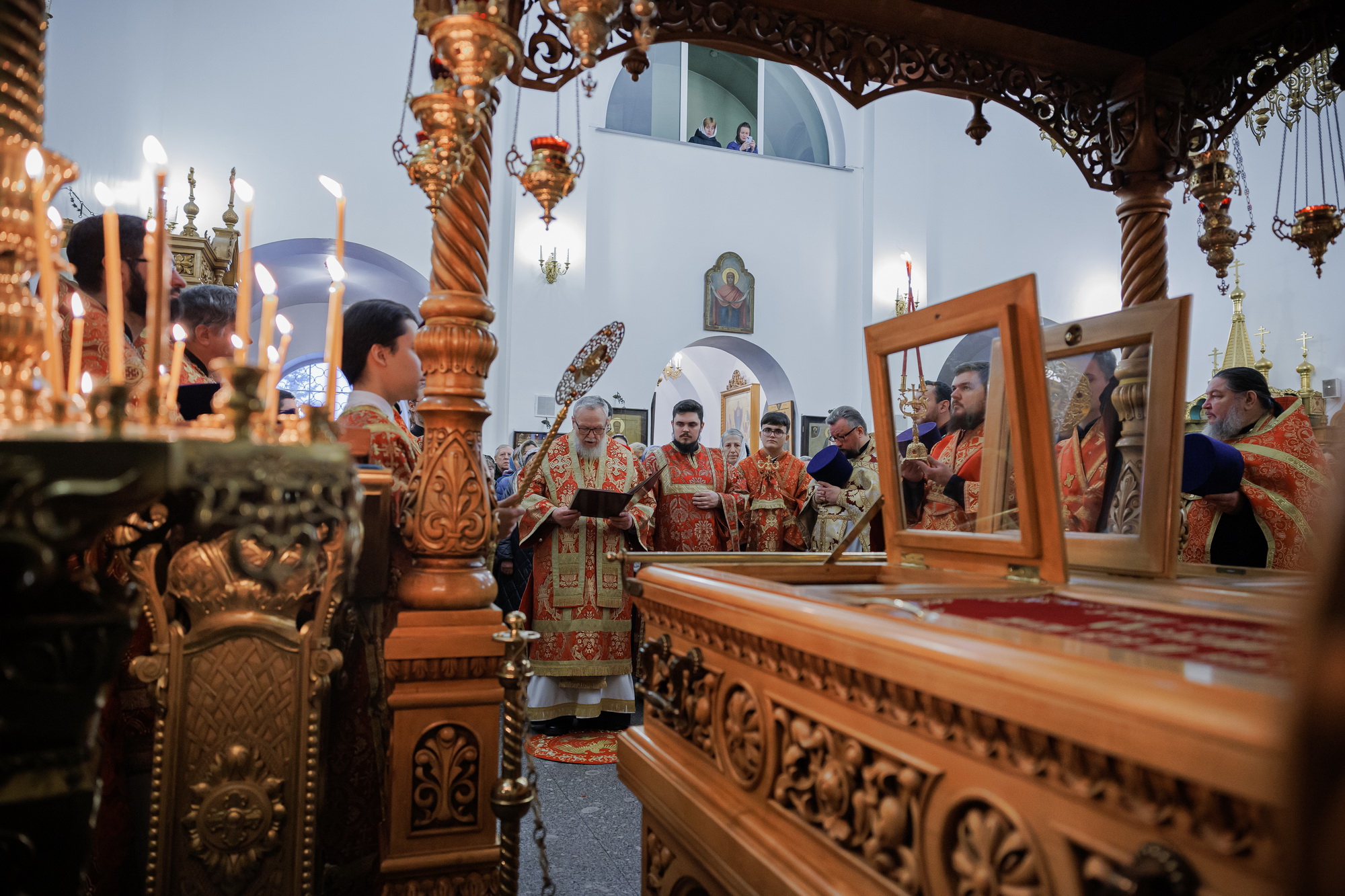 По окончании богослужения перед мощами священномучеников Александра и Феодора было совершено славление, после чего отец настоятель поблагодарил Владыку Николая за совершённое богослужение.