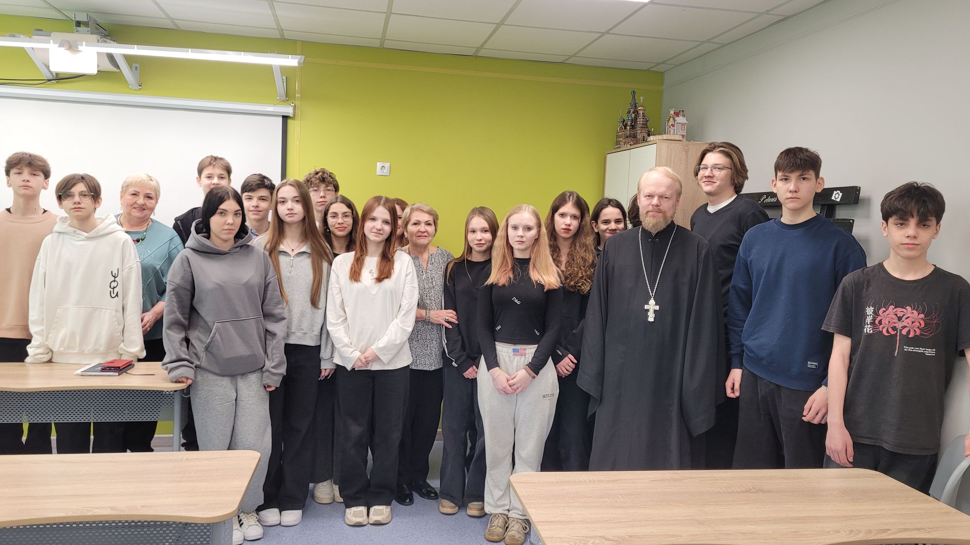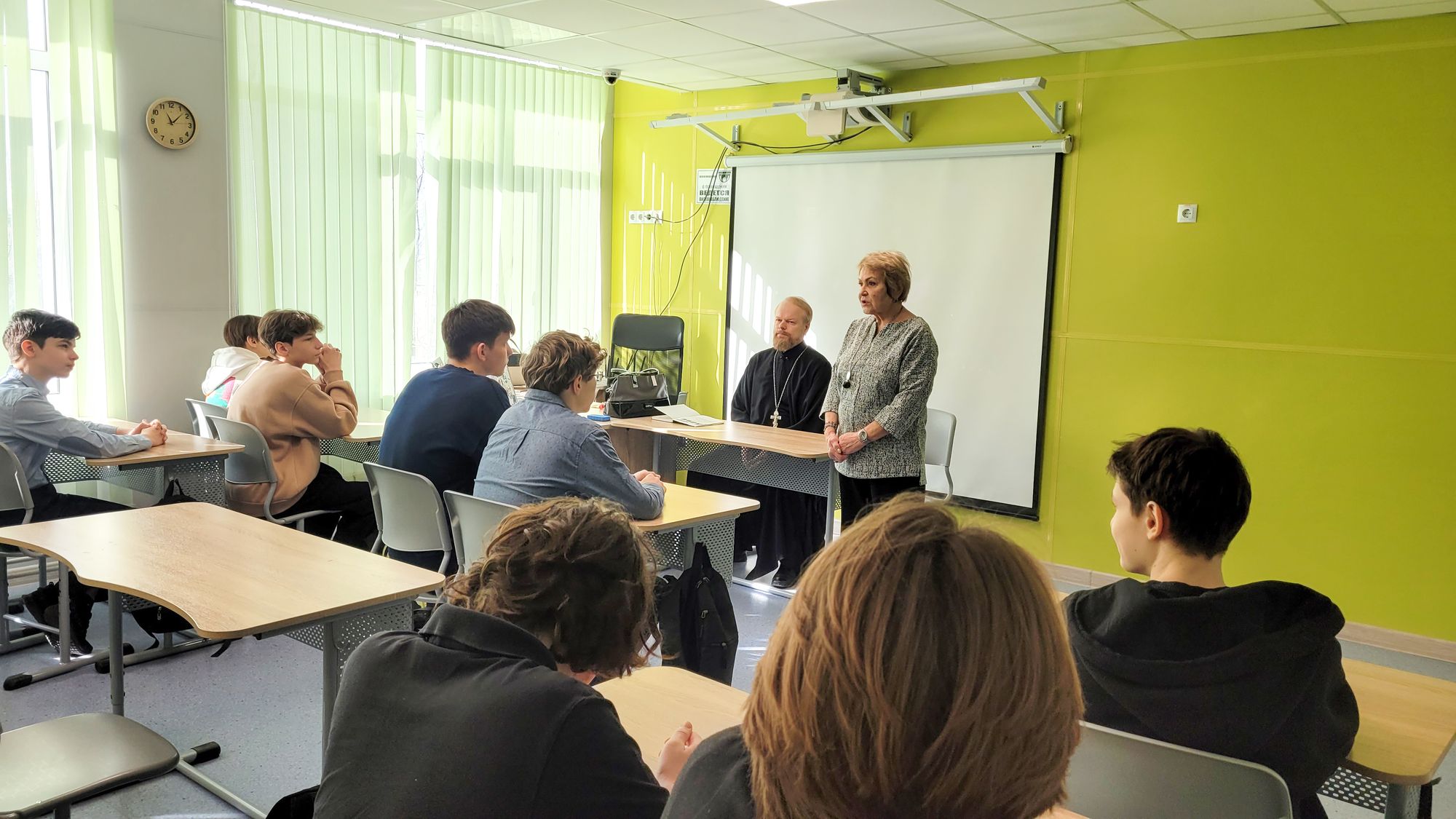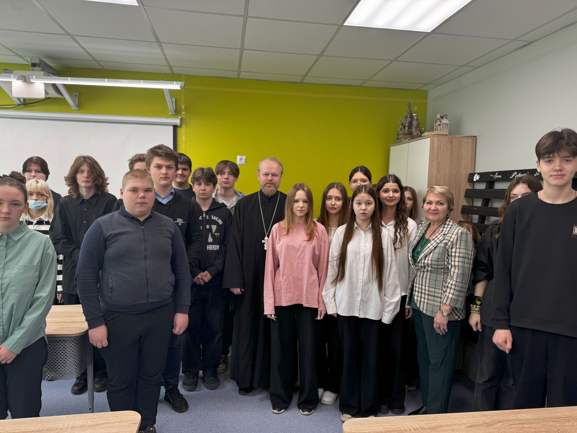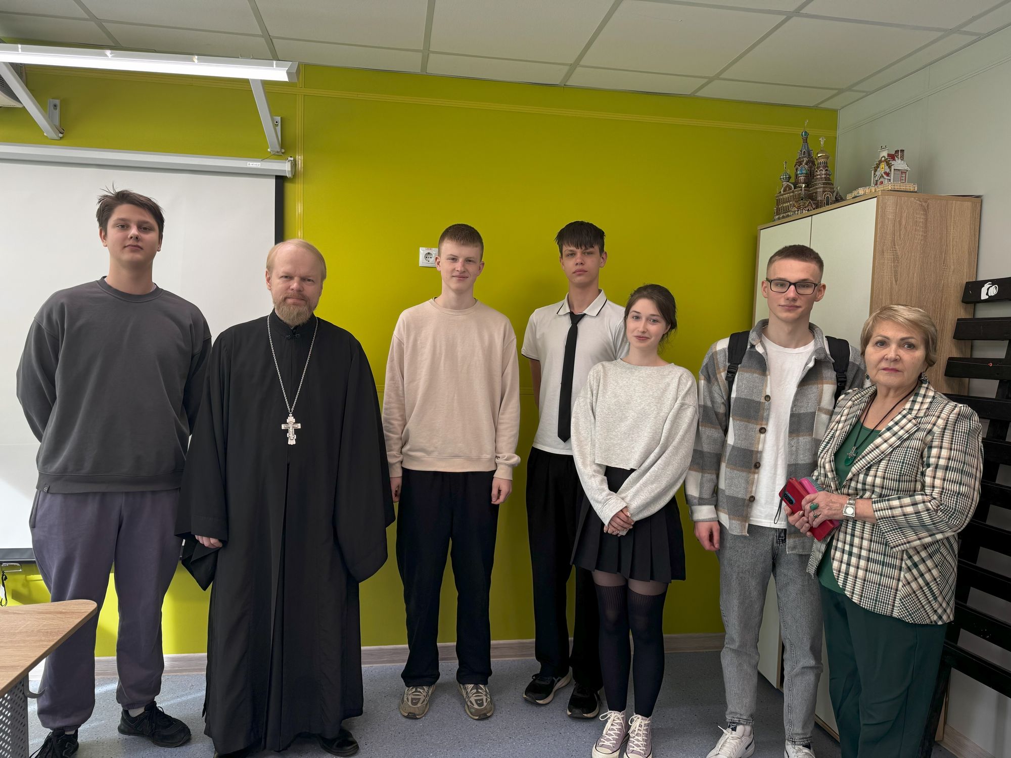 Мероприятие было посвящено темам «Битва под Москвой» и «Сталинградская битва». Батюшка рассказал школьникам о духовном понимании истории и воинского подвига.