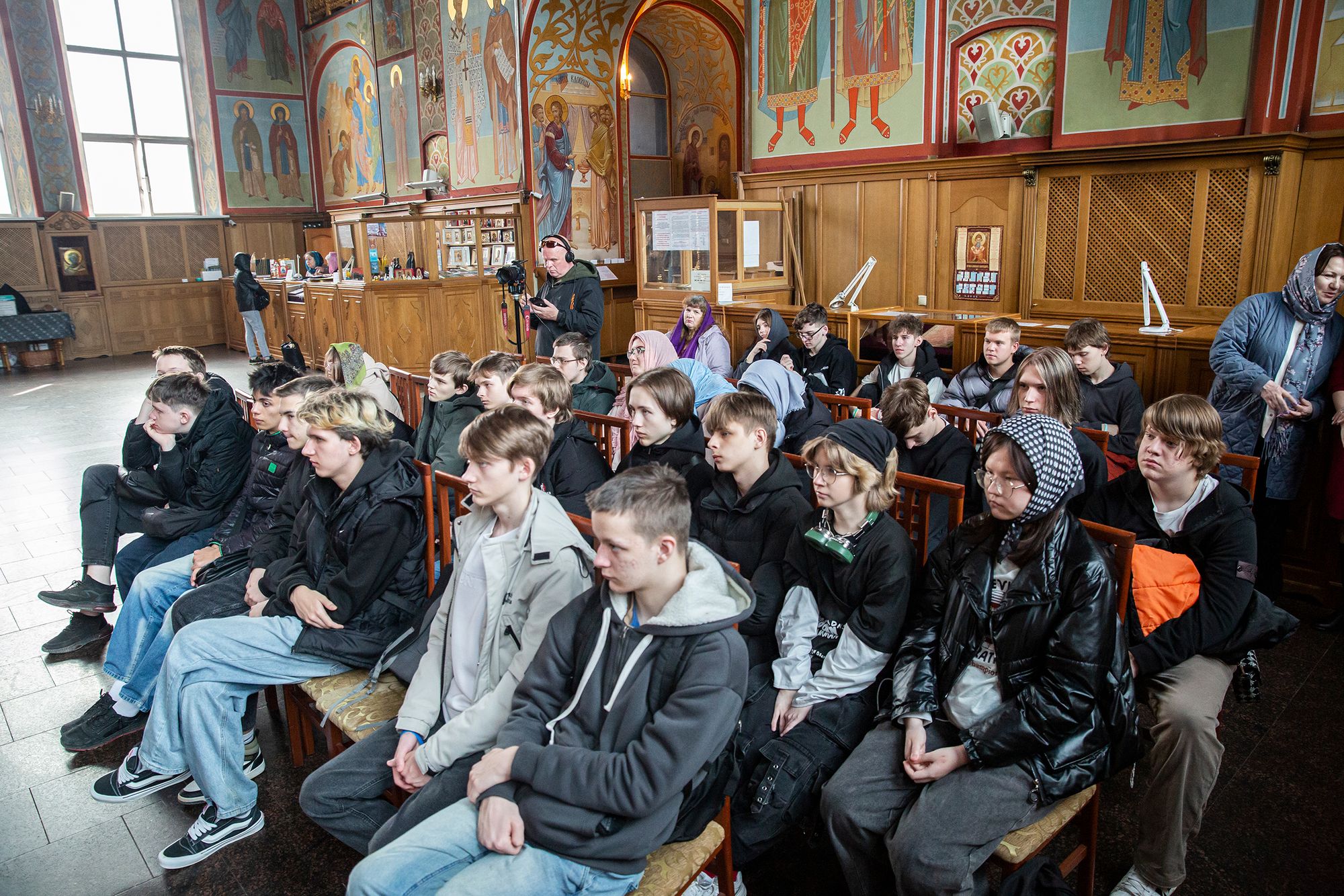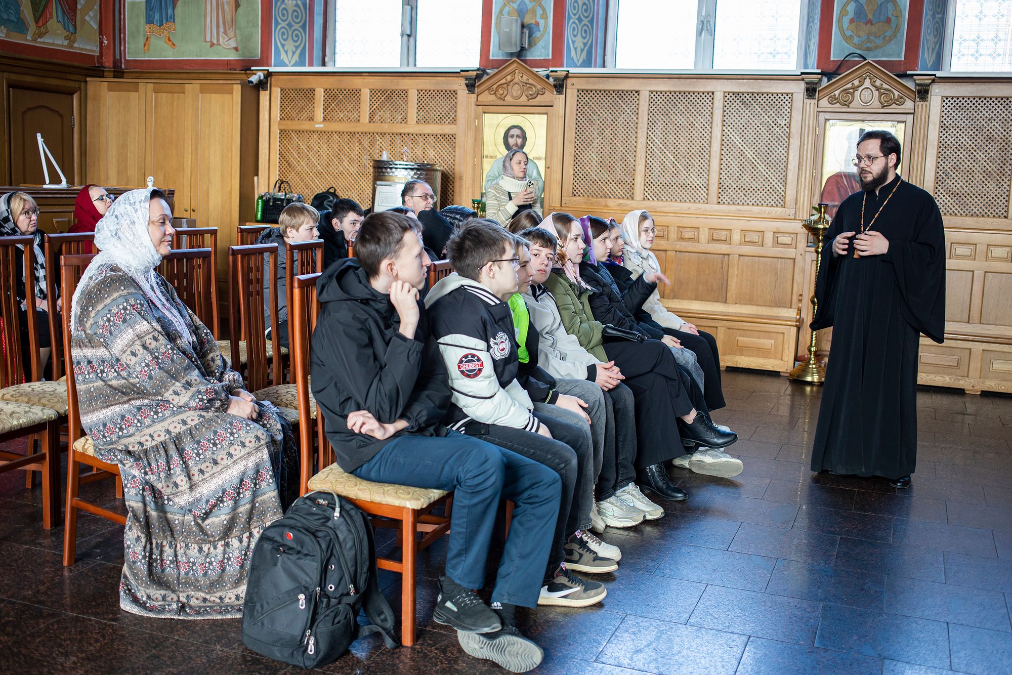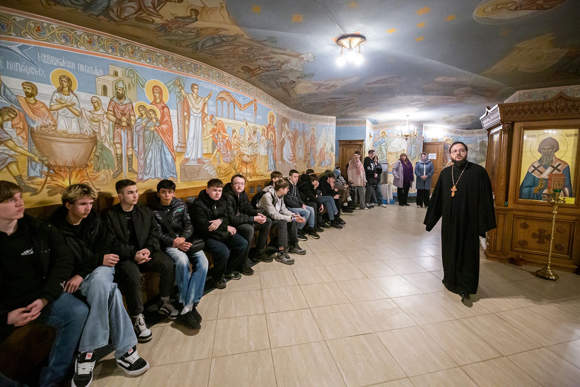 Руководитель Молодёжного движения при соборе, член Союза композиторов России священник Роман Галиев провёл для ребят экскурсию, рассказал об устройстве храма и его истории.