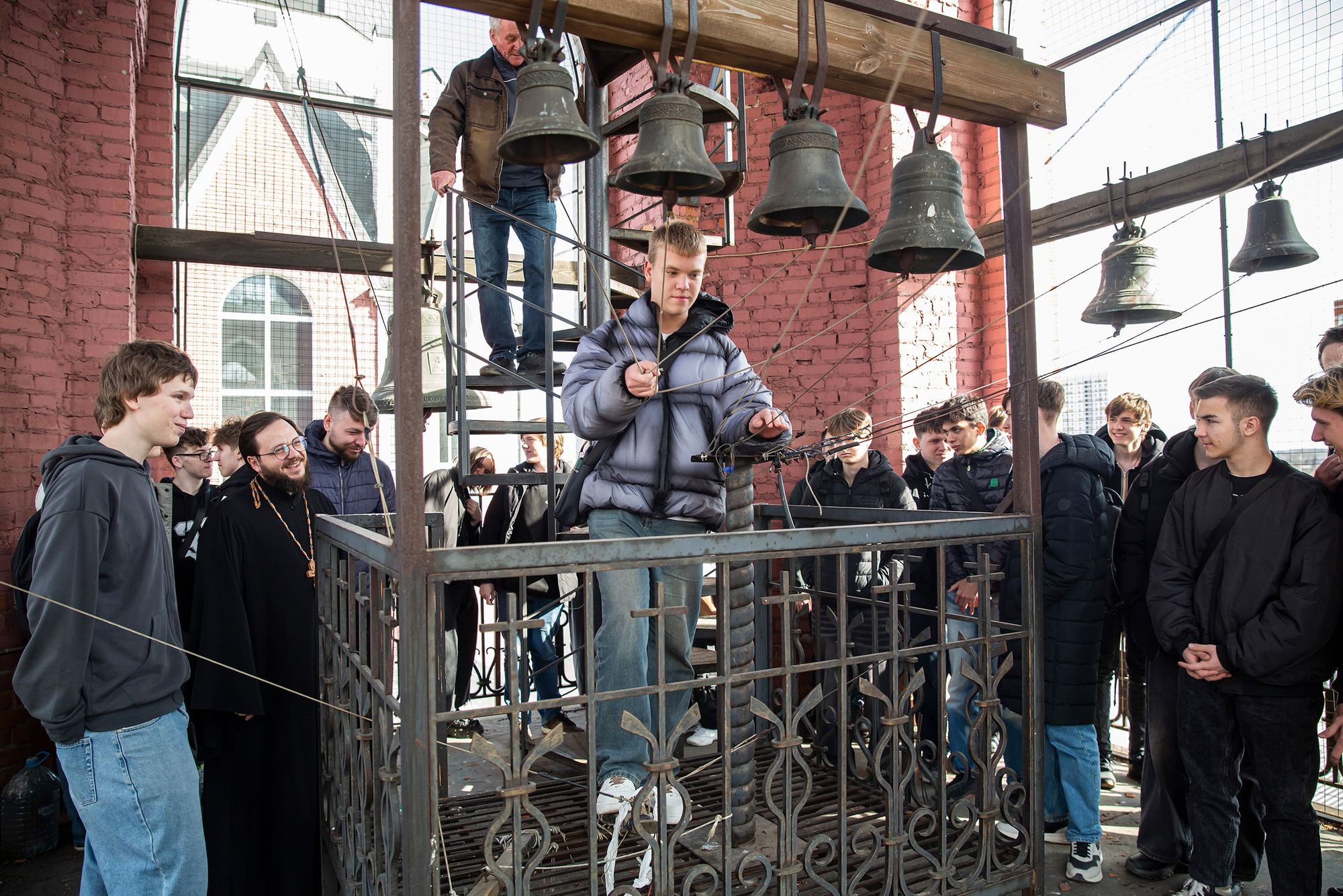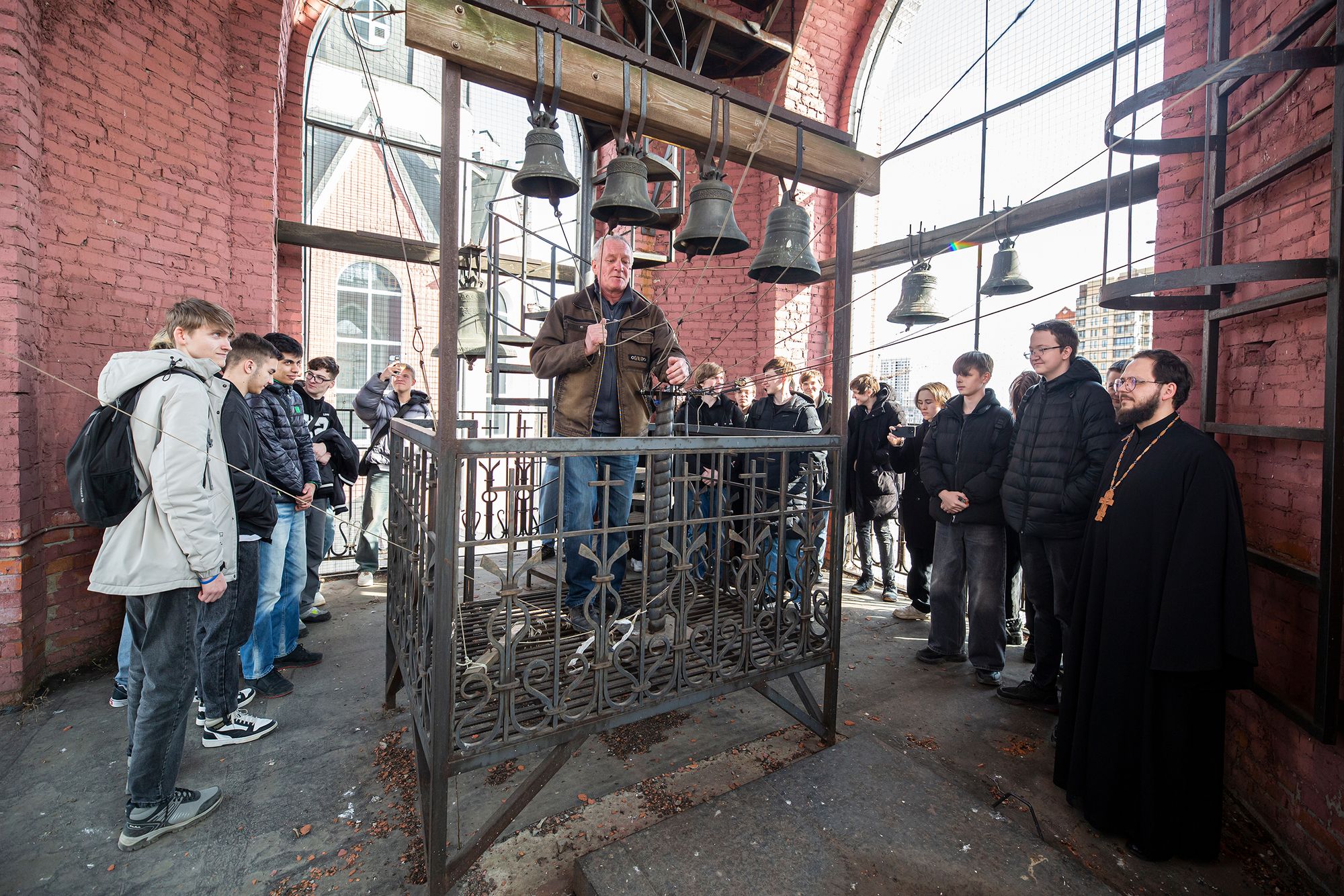 На колокольне для гостей собора был проведён мастер-класс колокольного звона.