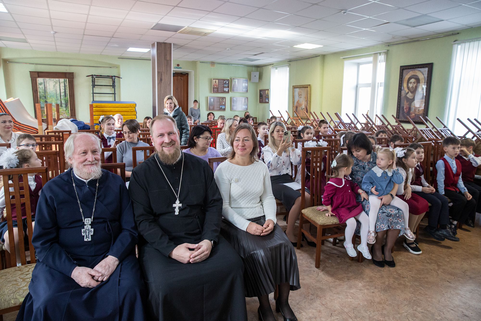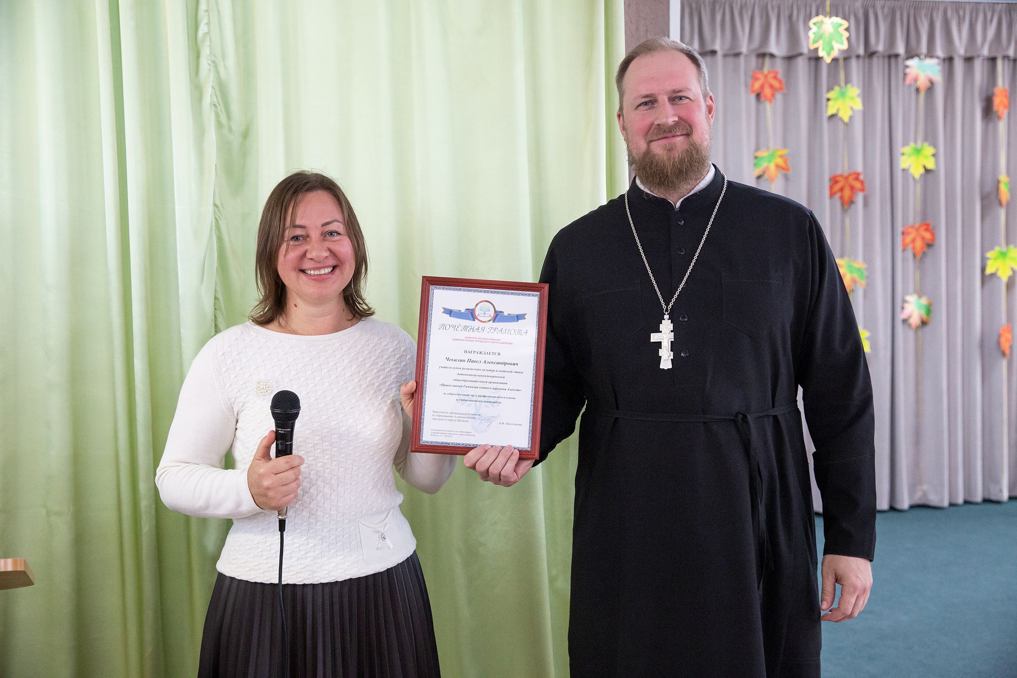 Благочинный Щёлковского церковного округа протоиерей Андрей Ковальчук, духовник гимназии священник Павел Чекалин и директор гимназии Анна Викторовна Лыгина поздравили всех причастных к делу образования и воспитания с праздником.