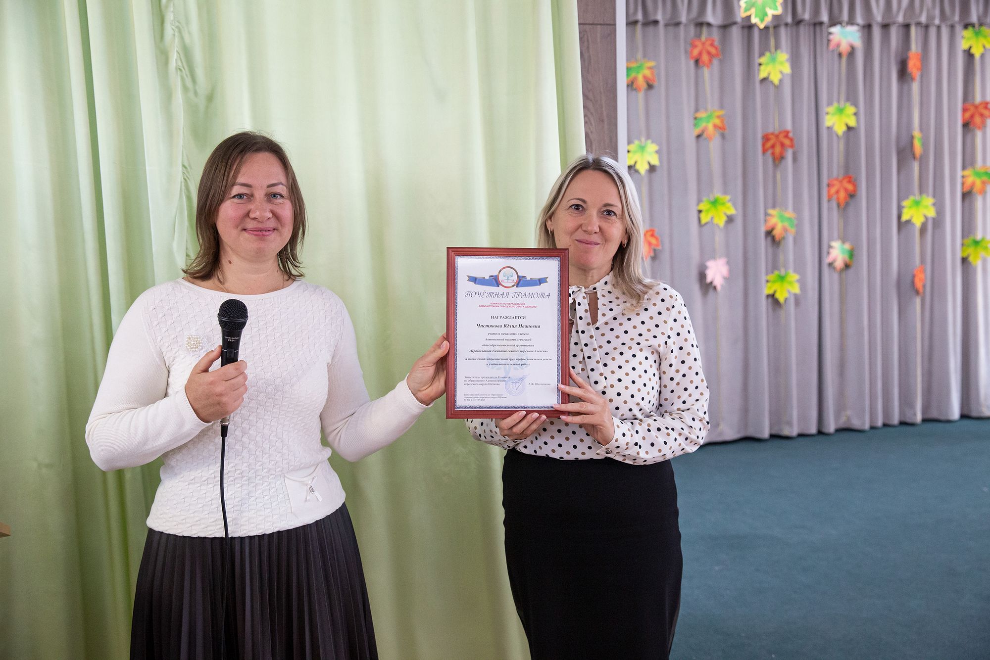 Затем состоялось вручение почётных грамот Комитета по образованию администрации городского округа Щёлково педагогам гимназии.