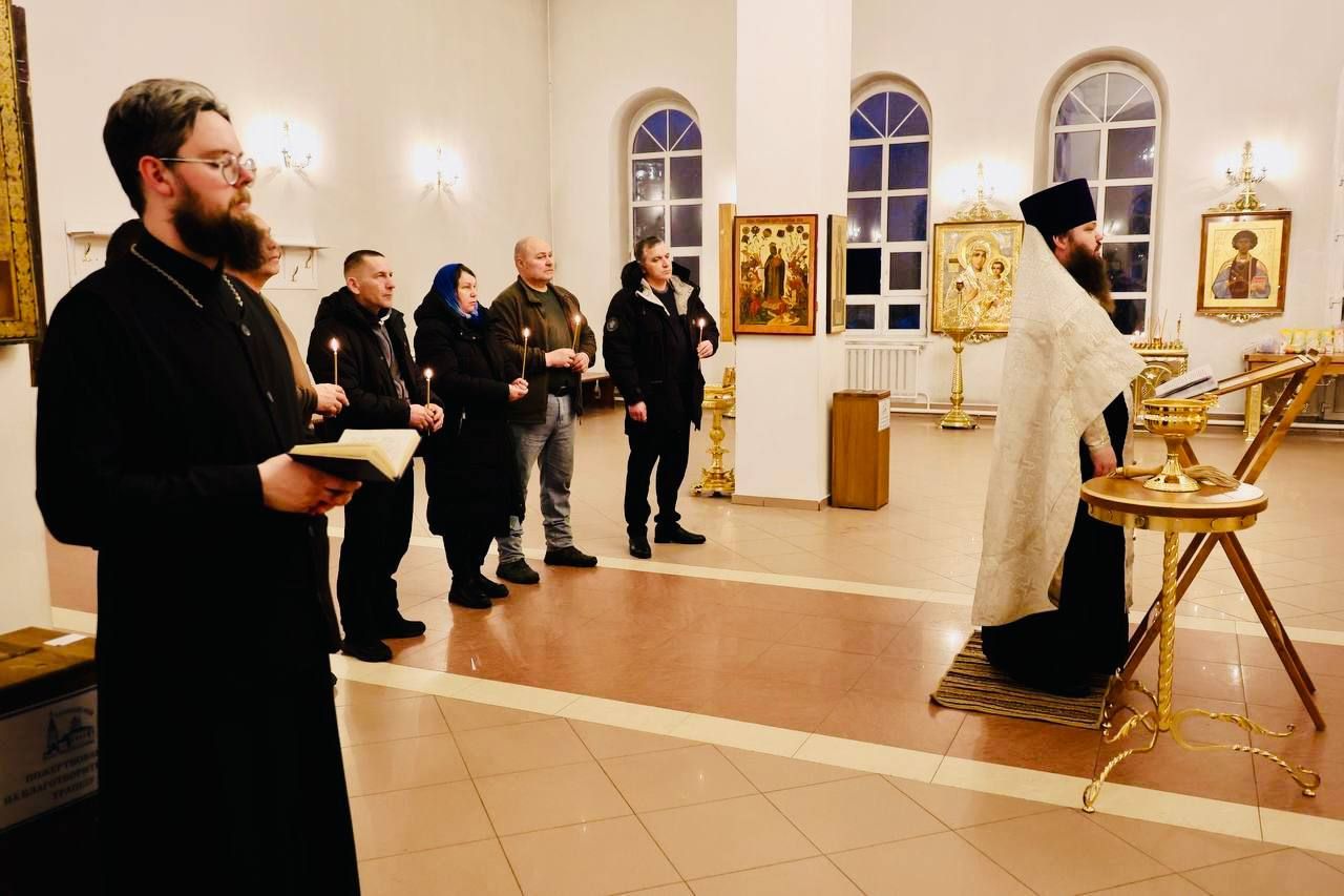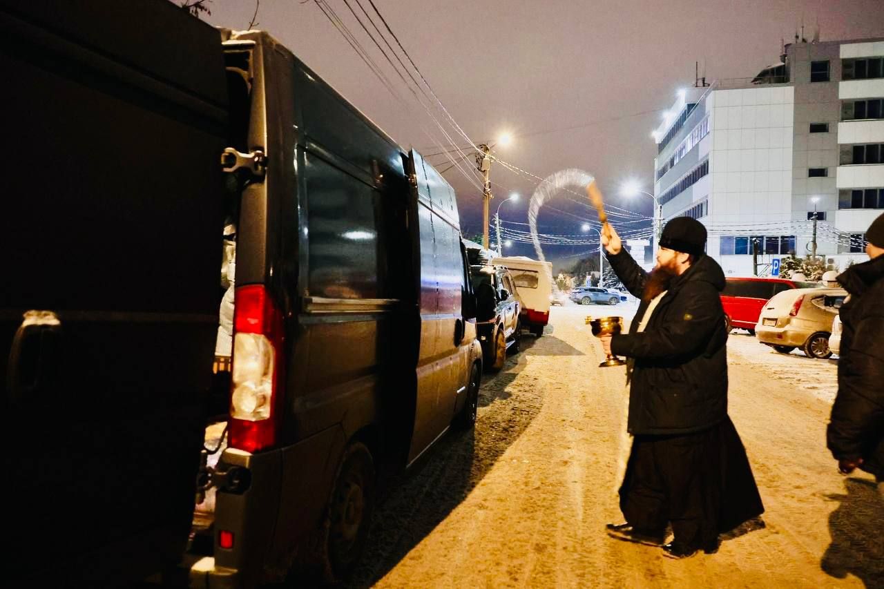 За богослужением молились председатель совета депутатов Р. И. Тикунов, возглавляющий поездку, и участники гуманитарного конвоя.