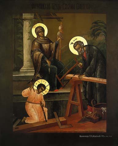 Начиная с конца XVII в., а в особенности в XIX и начале ХХ столетия появляются живописные композиции, мало связанные с иконописной традицией, но живо и наглядно иллюстрирующие Предание, касающееся детских лет Спасителя. Примером может служить написанная в 1923 г. мстёрским иконописцем