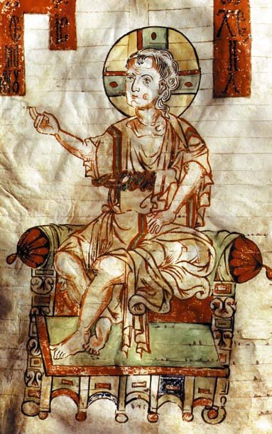Одно из самых ранних изображений Спаса Еммануила — мозаика церкви Сан Витале в Равенне, созданная в первой половине VI в. Здесь юный Христос восседает на символическом изображении земной сферы; правой рукой Он протягивает мученический венец святому Виталию (которому посвящен храм), а в Его левой руке — скрепленный семью печатями свиток (ср.: И видел я в деснице у Сидящего на престоле книгу, написанную внутри и отвне, запечатанную семью печатями — Откр. 5:1).