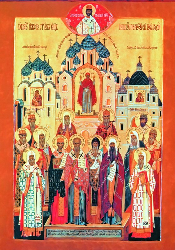 Сердцевиной русского исторического древа является „славный град Москва“, „корень Царства“, говоря словами грамот Смутного времени XVII в. Под покровом Владимирской иконы Божией Матери, в молении у Престола Успенского собора Московского Кремля с возлежащей на нем Ризой Господней стоят московские святители Петр и Алексий, Феогност и Иона, Ермоген и Филипп, Фотий и Киприан. Лик святых продолжают преподобные Савва и Андроник, благоверная княгиня Евдокия — супруга святого князя Димитрия Донского, преподобный