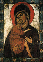 Одной из самых известных и, несомненно, самой почитаемой в центральной Руси была икона Богоматери, именуемая Владимирской, привезенная на Русь в первой трети XIII в. Судьба ее складывалась драматично. В 1155 г. князь Андрей Боголюбский перенес ее из Вышгорода во Владимир, украсил дорогим окладом и поместил в Успенский собор, построенный в середине XII в. После убийства князя Андрея Боголюбского в 1176 г. князь Ярополк снял дорогой убор с иконы, и она оказалась у князя Глеба Рязанского. Лишь после победы князя Михаила, младшего брата Андрея Боголюбского, над Ярополком Глеб вернул икону и оклад во Владимир. При взятии Владимира татарами, во время пожара Успенского собора в 1237 г. собор был разграблен, и с иконы Богоматери вновь содрали оклад. В 1395 г., во время нашествия Тамерлана, икона была привезена в Москву, и в тот же день (26 августа) Тамерлан отступил от Москвы и покинул пределы русского государства. Позднее икона пребывала в иконостасе главного храма страны — Успенского собора Московского Кремля. В 1812 г. перед древней святыней, увезенной в Муром, молились об избавлении от нашествия двудесяти языков. В 1918 г. икону из Успенского собора забрали; сейчас она в Третьяковской галерее. В 1993 г. перед Владимирской иконой возносил горячие молитвы святейший Патриарх Алексий II — стране грозила опасность быть ввергнутой в пучину новой гражданской войны.