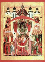 Идея единения нашла отражение и в ранних русских иконах Покрова Пресвятой Богородицы. Как писал кн.